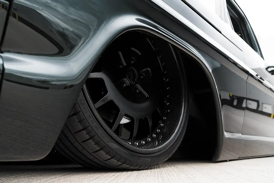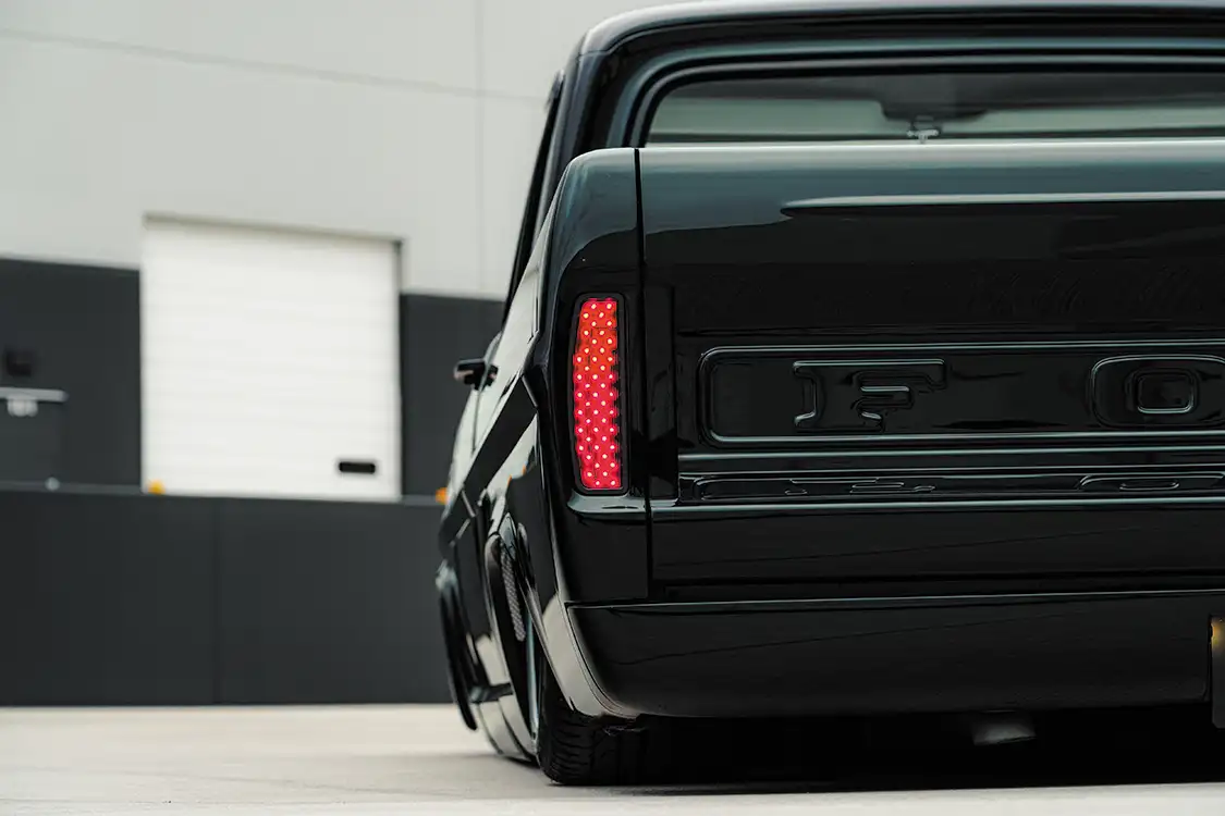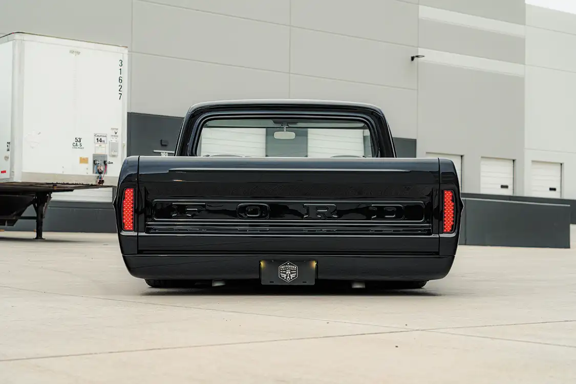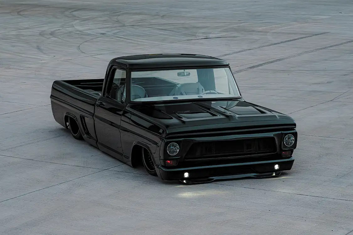 Fat Fender Garage has teamed up with Porterbuilt Fab to produce specialized chassis systems for classic Ford pickups. The one utilized here is a Level 3 package, which allows the truck to lay frame on the concrete. Sure, it’s low, but there is no sacrificing ride quality here. Air Lift Performance air management components have been plumbed and wired into position to add user-friendly adjustability, and a rear cantilever 4-link setup helps in adapting to all road conditions. 22-inch Avant Garde wheels and Pirelli P Zero rubber contribute to the look of the F-100’s low-slung stance and overall on-road performance.
