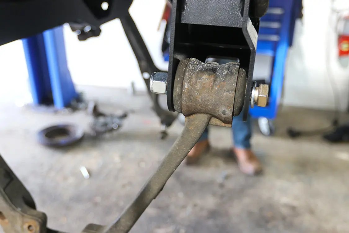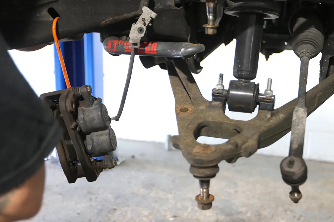 09. Next to come off are the shocks and lower control arms.