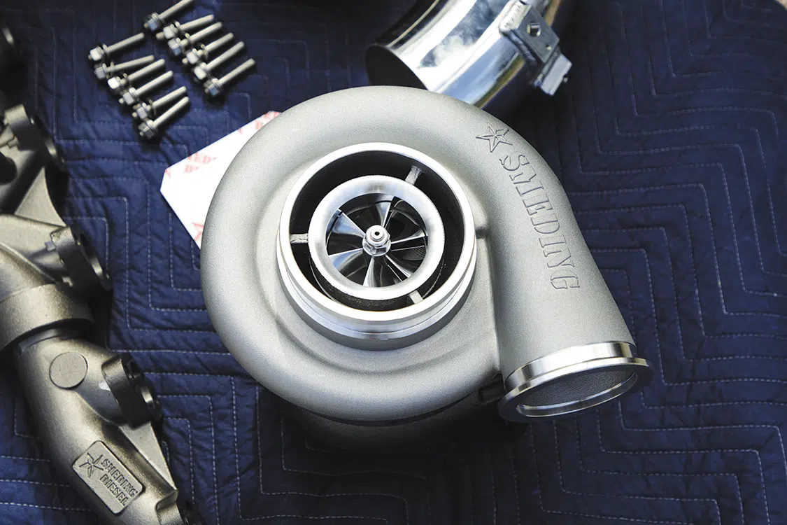 We have been over-fueling our last turbocharger (Smeding Diesel S362) quite a bit for the first iteration of this build, so today we are going to turn it up a notch and change from our previously stated 300 frame charger and stock T3 manifold to a Smeding Diesel S467 and a three-piece T4 manifold. We are also going to install Smeding’s stainless manifold bolt kit. Let’s get to it!