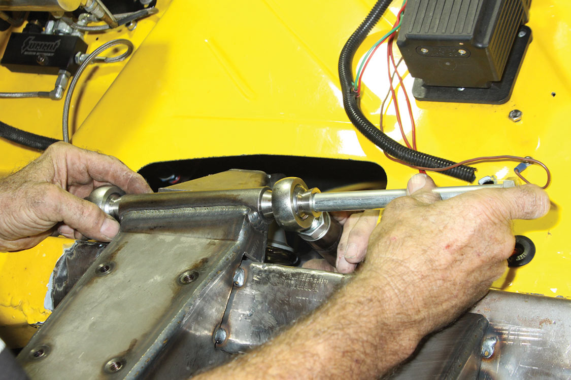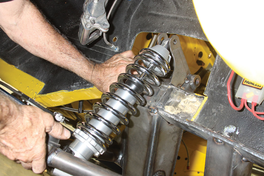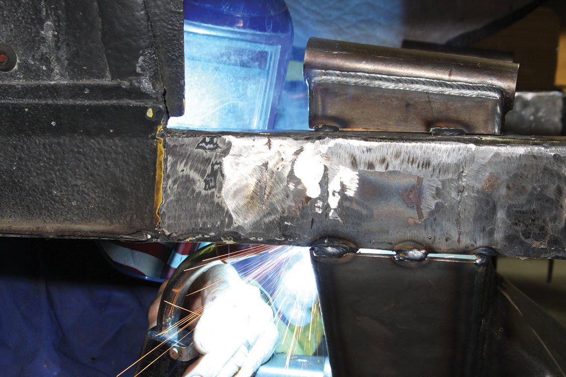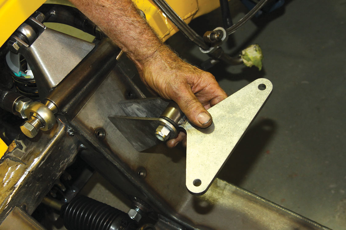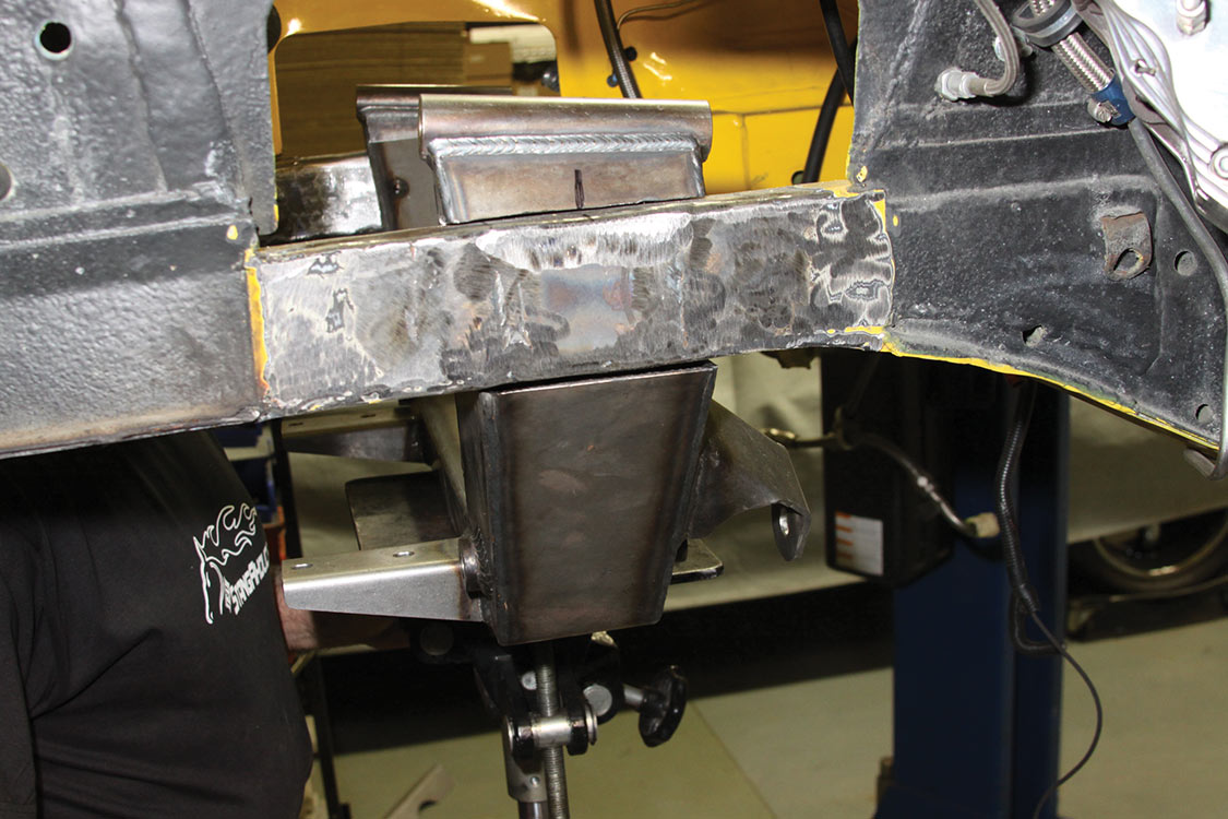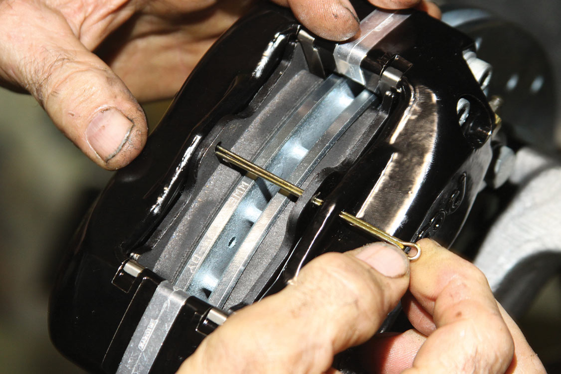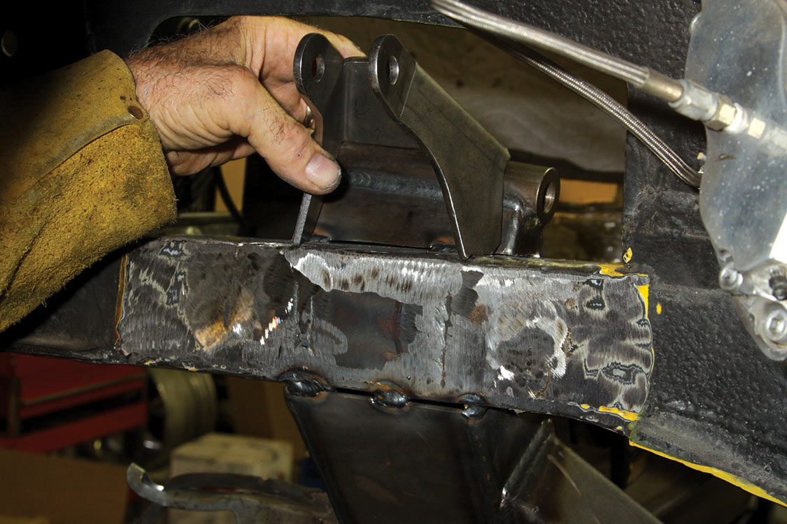 6.Subframe mock-up has been accomplished, allowing Ron to weld a solid bead along all seams. The thing is, you don’t want the steel to distort, which calls for welding 1-2 inches at a time and allowing everything to cool before continuing. Here, the main subframe is welded in segments and allowed to cool. Everything is plumb and true which means component installation will be straightforward.7.The upper shock mount is positioned and secured for welding. It’s a good idea to perform a mock-up here prior to welding. Temporarily install the coil-over shock and lower control arm and position the mount. Then, weld the mount in 1-2-inch beads and allow to cool.8.The upper shock mount is positioned and secured for welding. It’s a good idea to perform a mock-up here prior to welding. Temporarily install the coil-over shock and lower control arm and position the mount. Then, weld the mount in 1-2-inch beads and allow to cool.9.The secondary subframe is positioned and bolted to the main subframe as shown. Contact surfaces are perfectly mated and dimensions checked per the Heidt’s instruction sheet, then bolts are tightened. This gets the front subframe package square and true with the Mustang’s frame rails. Again, check your dimensions before finishing welding.10.The secondary subframe is positioned and bolted to the main subframe as shown. Contact surfaces are perfectly mated and dimensions checked per the Heidt’s instruction sheet, then bolts are tightened. This gets the front subframe package square and true with the Mustang’s frame rails. Again, check your dimensions before finishing welding.11. The secondary subframe is positioned and bolted to the main subframe as shown. Contact surfaces are perfectly mated and dimensions checked per the Heidt’s instruction sheet, then bolts are tightened. This gets the front subframe package square and true with the Mustang’s frame rails. Again, check your dimensions before finishing welding.12.Heidt’s PRO G lower control arms are coated with the urethane lube provided, and bolts are installed and snugged. Do not tighten these bolts until all suspension components have been installed because you want everything in its place before you begin tightening fasteners. Always double and triple check fasteners for tightness and secure with cotter pins before putting the vehicle back on the ground. This is not an issue to take lightly because you don’t want to be caught without steering and suspension.13.Heidt’s PRO G lower control arms are coated with the urethane lube provided, and bolts are installed and snugged. Do not tighten these bolts until all suspension components have been installed because you want everything in its place before you begin tightening fasteners. Always double and triple check fasteners for tightness and secure with cotter pins before putting the vehicle back on the ground. This is not an issue to take lightly because you don’t want to be caught without steering and suspension.14.The PRO G coil-over shocks are installed next. Heidt’s adjustable coil-overs are available in plain or polished, with chromed coil springs. Ride height is adjustable via spring adjustment, and ride quality and dampening are adjustable through two valves and 10-position adjustments so you can fine-tune suspension function. These shocks are 12 ¾ inches extended and 9 ½ inches compressed. They’re easy to install and service.15.Upper control arms employ beveled spacers that go between the Heim joints and subframe. These long bolts serve as the pivot point for upper control arms. What makes PRO G an awesome setup is the fully articulating Heim joints that allow firmness and flexibility at the same time in the PRO G’s upper control arms. Heim joints also allow a full range of camber and caster adjustment.16. Upper control arms employ beveled spacers that go between the Heim joints and subframe. These long bolts serve as the pivot point for upper control arms. What makes PRO G an awesome setup is the fully articulating Heim joints that allow firmness and flexibility at the same time in the PRO G’s upper control arms. Heim joints also allow a full range of camber and caster adjustment.17. PRO G upper and lower control arms as installed on the Stang-Aholics Mustang fastback resto-mod. As you can see, lower arms are fixed position with rock solid urethane bushings that will maintain position with great consistency. Upper arms sporting Heim joints are not only adjustable and fully articulating, they will maintain alignment settings because it’s virtually impossible to knock them out of adjustment.18.Heidt’s 2-inch dropped spindles are set up for the PRO G’s Wilwood disc brakes. This gets your Mustang more intimate with the pavement in road-hugging coolness because down low is where it’s at if you want real handling and good looks. With the Heidt’s lower ride height comes a more useful center of gravity detrimental only to ant mounds because we’re talking low down.19.Ron preps and installs our optional race-bred Wilwood disc brakes, which have conventional spindles and wheel bearings. Bearings have been washed in a petroleum-based solvent and packed with high-temperature wheel bearing grease. Ron ascertains proper seating of inner and outer bearings and lubricates the axle seal. Surfaces between bearings and spindle must be dry for bearing security. The bearing’s inner race should be secure at the axle spindle; it shouldn’t turn. Wilwood disc brakes are easy to service; pad replacement involves this cotter pin, which makes it easy to remove worn pads and install new in a matter of minutes.20.Ron preps and installs our optional race-bred Wilwood disc brakes, which have conventional spindles and wheel bearings. Bearings have been washed in a petroleum-based solvent and packed with high-temperature wheel bearing grease. Ron ascertains proper seating of inner and outer bearings and lubricates the axle seal. Surfaces between bearin