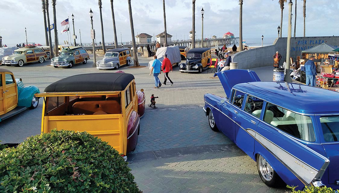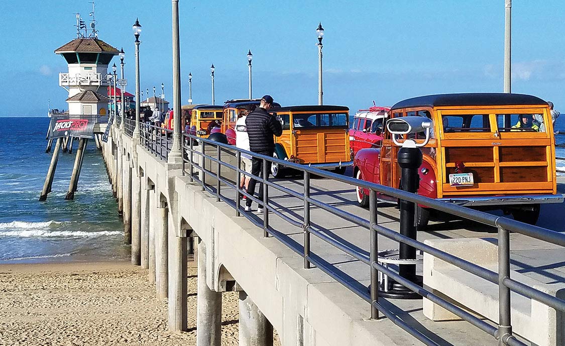 The Surf City morning weather was a little brisk for the 18th Annual Huntington Beachcruiser Meet, but by 9 o’clock the sun was out and temperatures were in the mid-70’s. Saturday started with participants arriving at the sold out event as early as 4:30am, by 6:00am Main Street was full of 100+ “Beachcruisers”! The Pier Plaza area was where most of the Woodies parked and the adjacent parking lot contained another 125 or so Cruisers. Despite the weak turnout on Sunday, it was time for “Woodies on the Pier.” 8 to 10 Woodies and several other cool hot rods got to park on the pier.