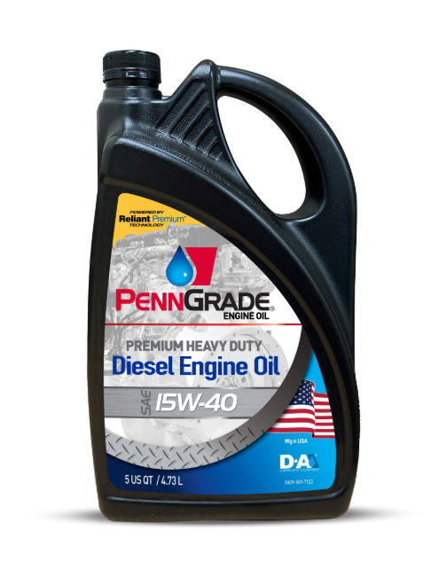 PennGrade Premium Heavy Duty Diesel Engine Oil is compatible with most new and older-model diesel engines. It’s available in five-quart bottles.