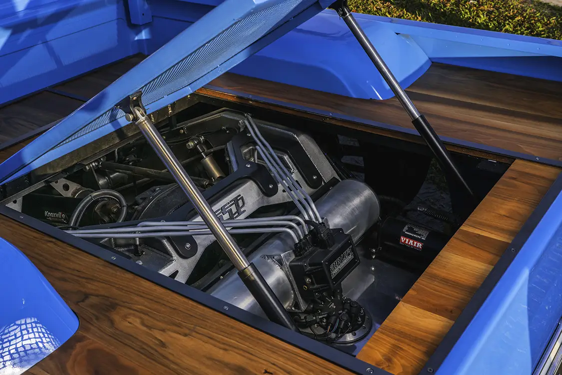 Inside, Chris Pate at MTI Automotive Designs worked his magic with Relicate leather, a billet steering wheel, and a Pioneer 10-inch touchscreen head unit.
