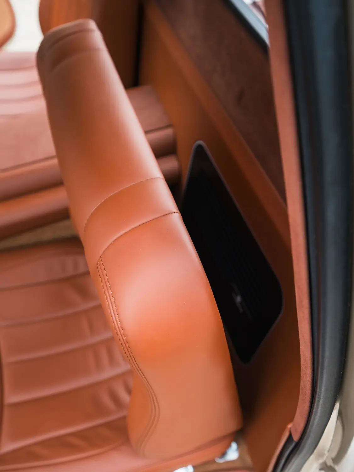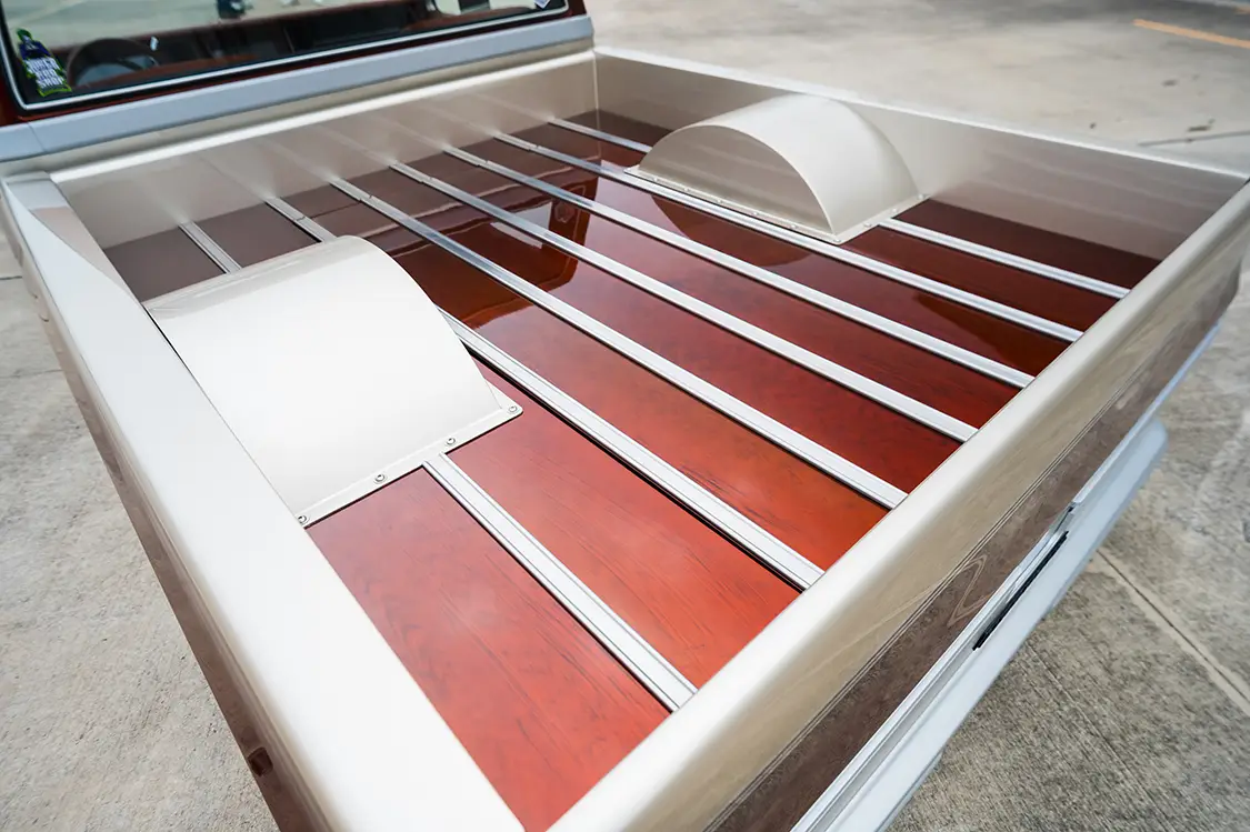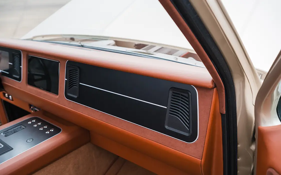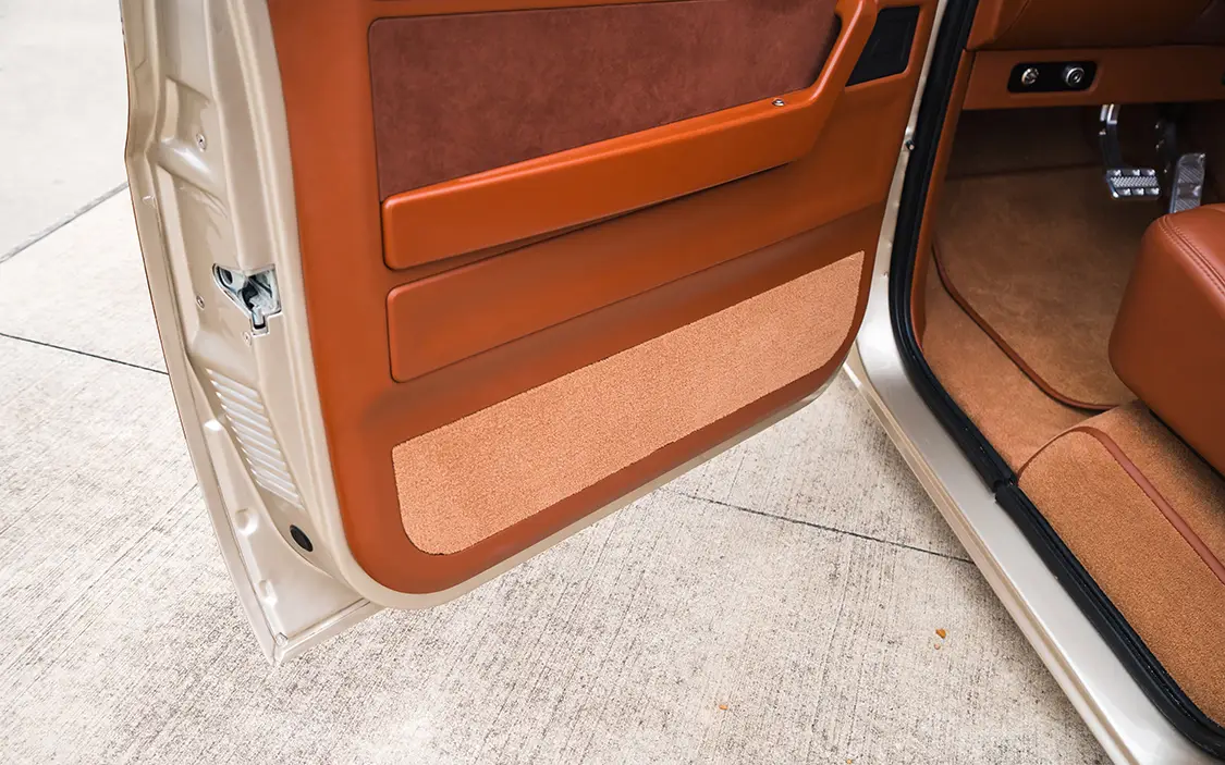 Four years deep and over $150k later, Hermano sits as one of the cleanest and most meaningful rides you’ll see at any show. The body mods are subtle but tight. Earl sourced a new front grille from LMC Truck, stepping it back a couple of years with a 1984 Chevy C10 look. Both bumpers got tucked and shaved for a tighter fit, and fresh front and rear lighting from United Pacific brings it all together. When it came time to paint, Earl let his wife, Ami, make the call. She chose tan with candy orange from Robert Meza at Alamo Customs in Alvin, Texas—a solid choice of both paint and painter.