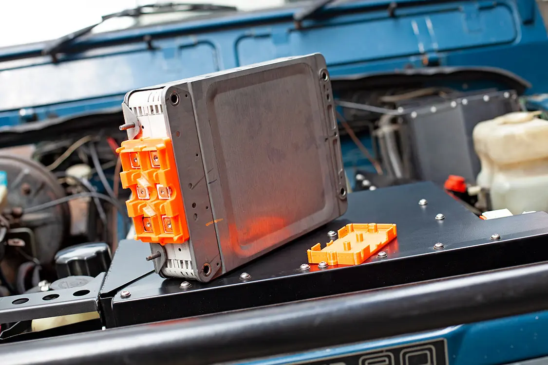 After four years of R&D, the LEC team found ways to repurpose most components from the Leaf. For example, they reuse the battery management system instead of a standard aftermarket unit. They can even program it to handle more or less battery capacity, depending on the vehicle and its desired range—a feat in itself. That said, on this 90, a full 2017 Nissan battery pack was used that contained 24 modules.