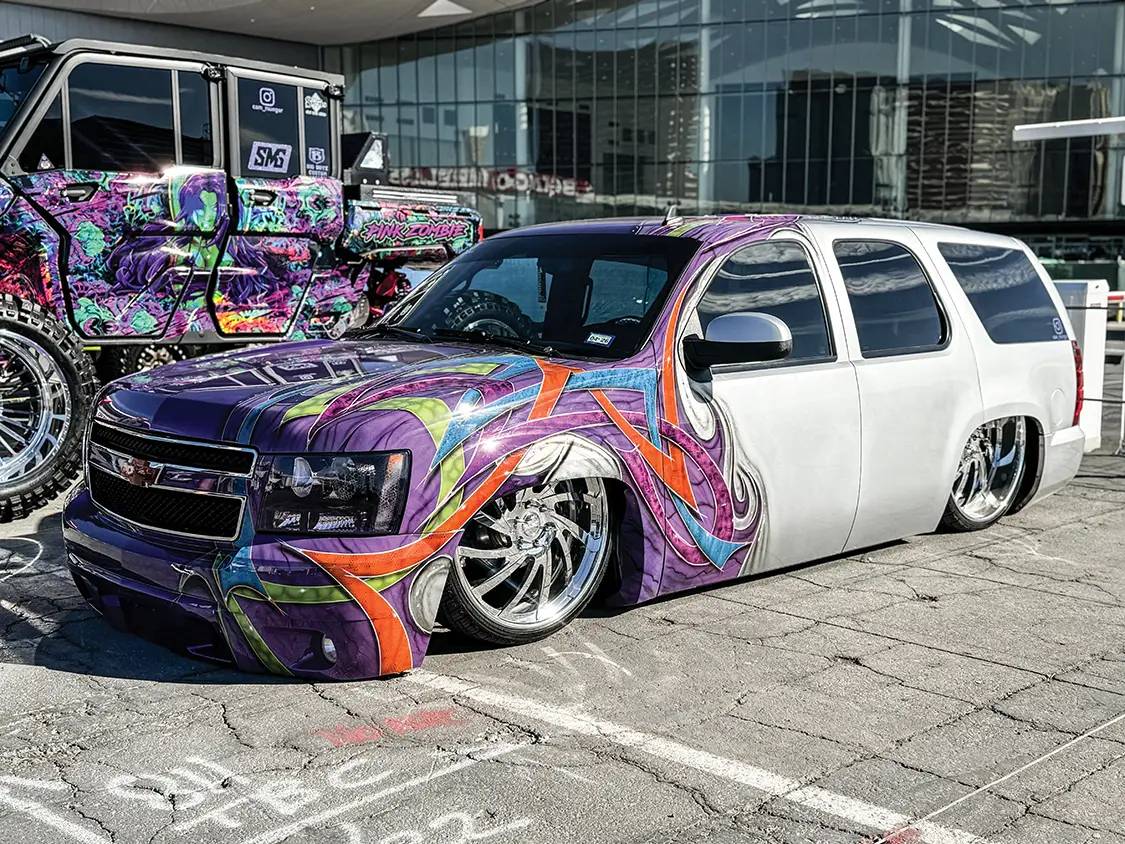 This year’s displays were nothing short of breathtaking. West Hall’s Trucks, SUVs & Off Road section overflowed with everything from slammed square-body C10s on 26-inch billets to portal-axle Gladiators ready for Moab. Nearby, lifted Rams on 40s rubbed fenders with lowrider Impalas, while carbon-clad widebody Chargers and Coyote-swapped Broncos flexed modern muscle. Classic Mustangs sat beside 1,000-horsepower restomods, and overland Tacomas packed with rooftop tents shared space with street-machine F-150s. What sets SEMA apart from any consumer auto show is access. Here, editors and builders walk shoulder-toshoulder with engineers from Fox, Ridetech, MagnaFlow, and Toyo Tires, discussing everything from new long-travel kits to car audio solutions. One-onone conversations in quiet corners of booths often yield the first look at products that won’t hit shelves for another year, insights that simply don’t happen anywhere else.