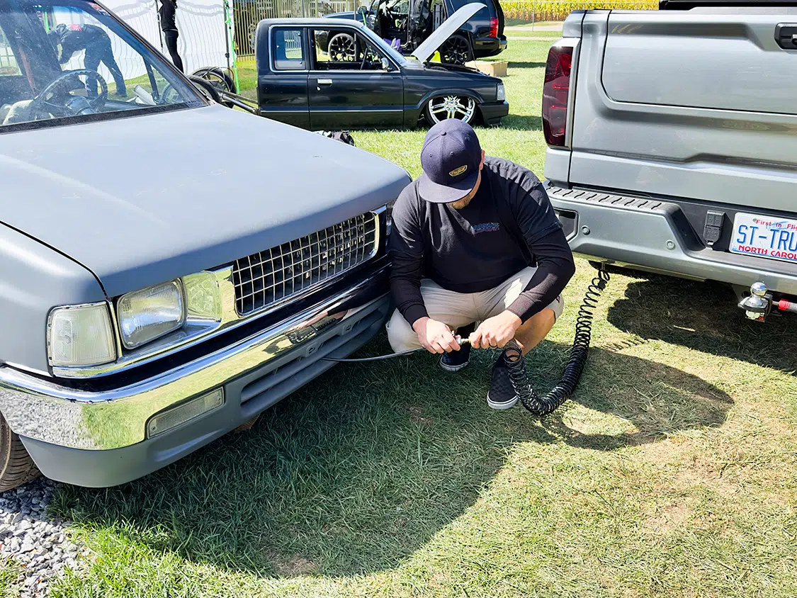 I have added onboard air to every one of my SEMA builds since 2014 and used it in multiple ways over the last decade, whether it’s to keep the truck and trailer tires properly inflated, blow water out of wheels and crevices after a car show rain shower, or help a buddy’s unfinished truck air up so it can be pushed back on the trailer at the end of the weekend.