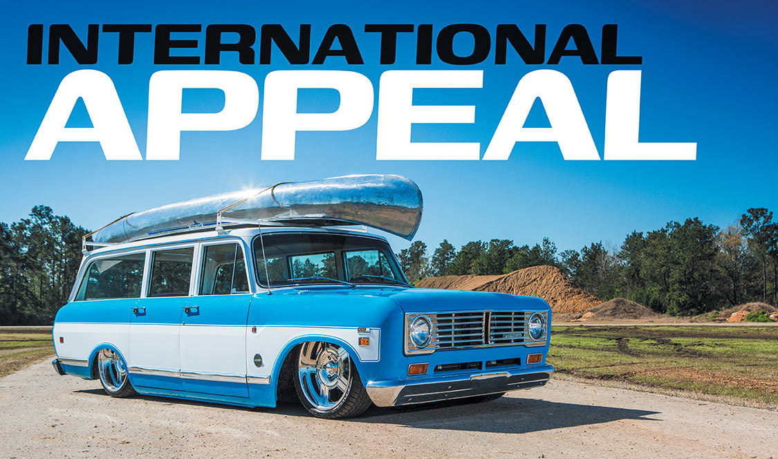 Once John met a guy by the name of Chris Stahl, the two began throwing around the idea of devising an entirely different suspension setup for the Travelall. Utilizing the factory ’73 IH chassis, the two designed a rear step notch to make room for a full air-ride system that Chris would orchestrate from scratch since readymade drop parts for these trucks don’t exist. All factory suspension components were removed, leaving bare frame rails. The frame itself was then built back up again with custom upper and lower control arms, CPP spindles and other modifications that would allow the truck to lay frame over a set of 22-inch Raceline wheels. Obviously, the Travelall’s stance has been a huge draw when it’s out on the road or parked at a show or anywhere else for that matter.