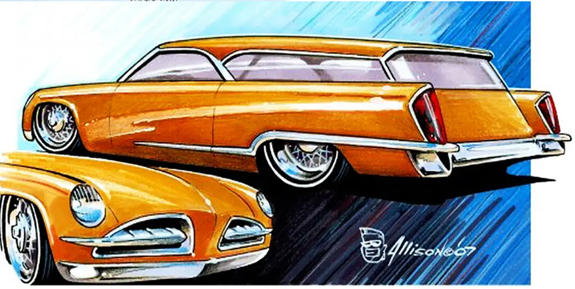 I had a day job as a UPS driver for 17 years, but I never gave up on that dream. The local custom car shops and car shows had me doing art for them and around the turn of the century, I began getting my work published in magazines regularly. I did “sketch pad” type pages in several different publications for years and had several artist features showing my work. Many of the cars I’ve designed made it onto magazine covers and have competed in car shows at the highest level, AMBR, and the Ridler. By 2005 I had quit the day job and was committed to art and design full time.