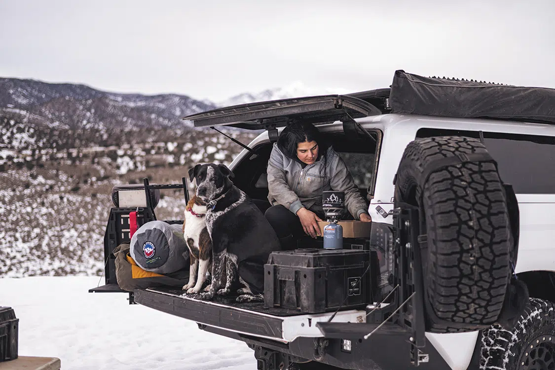 Her Instagram feed is the ultimate casual flex. Ski shots dominate during the winter, but shots of the Pickup and other camp adventures round it out. The Alice Offroad Instagram, on the other hand, is all trucks, all the time. We spot the Pickup, of course, with its sweet blue paint job, as well as an overlanding Tundra and a 2016 Tacoma she affectionately calls “Burtha,” yes, completely for the reason you’d think.