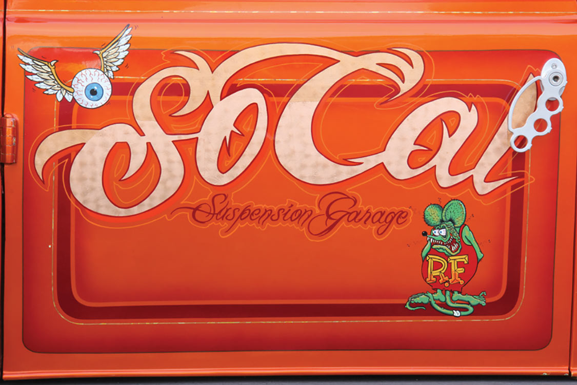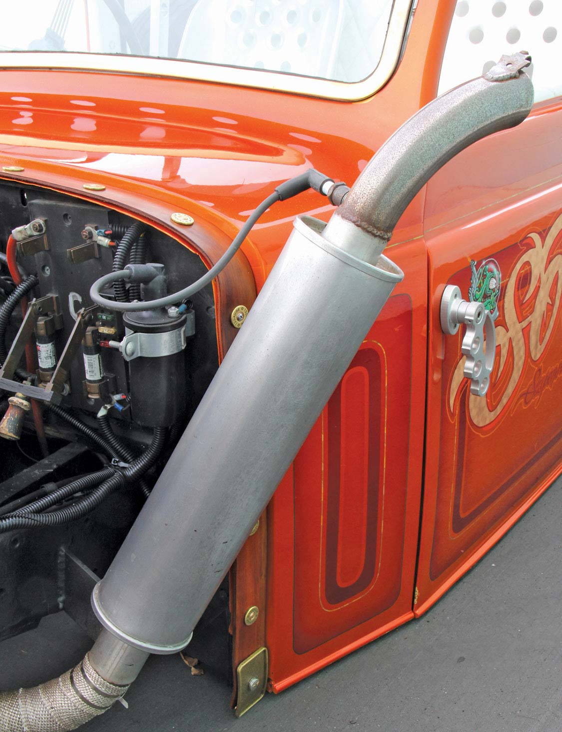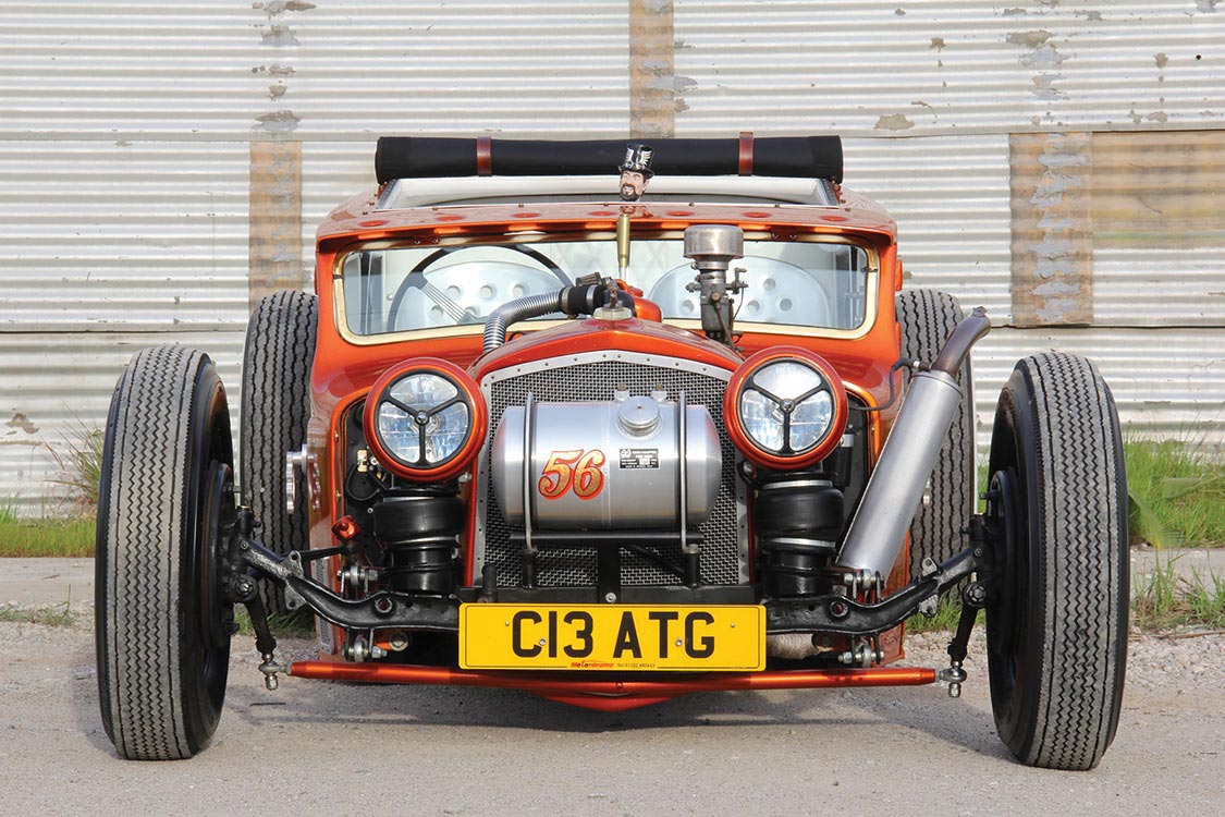 Looking at this ’48 Austin FX-3 taxicab turned rat rod it becomes impossible to envision this ride as it was originally: a road-going, traffic- and pedestrian-dodging London taxi. What’s more, it contradicts itself endlessly with many ironies. Oh, it’s a rat rod to be sure; however, where you expect to see American V-8 power is instead this ride’s original-equipment inline four sporting the nostalgic sound of an Austin FX-3 cab. Eric Connor of San Diego, So Cal Suspension Garage and Loose Cannon Kustoms can be credited with giving this former London cab a frontal lobotomy to the point where it has little or no memory of its previous life far across the North Atlantic. This guy tips the scales at 2,100 pounds and will do every bit of 80 mph sporting a knife-style kill switch copped from the Texas State Prison system.