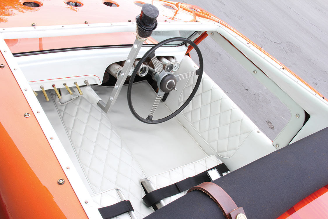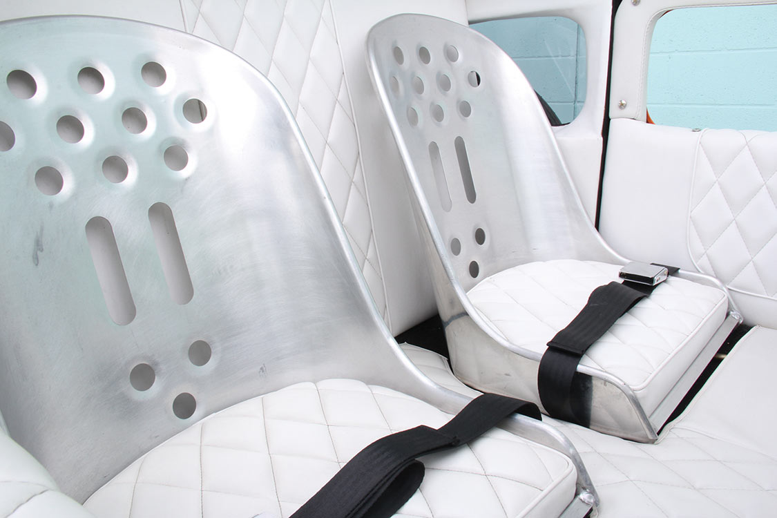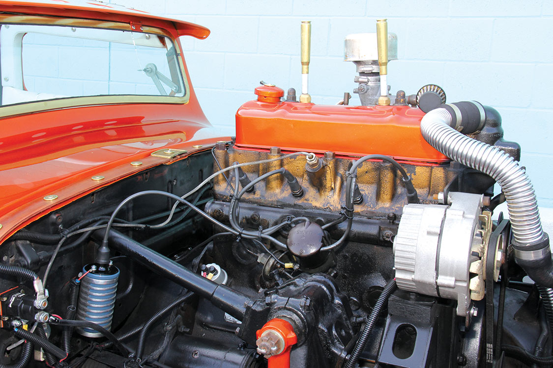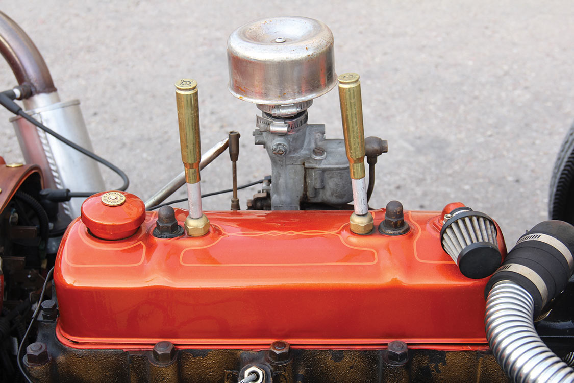 Looking at this ’48 Austin FX-3 taxicab turned rat rod it becomes impossible to envision this ride as it was originally: a road-going, traffic- and pedestrian-dodging London taxi. What’s more, it contradicts itself endlessly with many ironies. Oh, it’s a rat rod to be sure; however, where you expect to see American V-8 power is instead this ride’s original-equipment inline four sporting the nostalgic sound of an Austin FX-3 cab. Eric Connor of San Diego, So Cal Suspension Garage and Loose Cannon Kustoms can be credited with giving this former London cab a frontal lobotomy to the point where it has little or no memory of its previous life far across the North Atlantic. This guy tips the scales at 2,100 pounds and will do every bit of 80 mph sporting a knife-style kill switch copped from the Texas State Prison system.