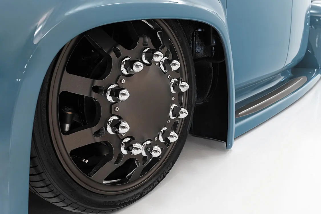 Another inclusion that was planned well before the project begun was maintaining the F-600’s rear dually wheel setup. Even though the truck’s frame was designed to lay flat on the ground, it still is very much a big truck that can still roll on big wheels. Nothing short of 22.5-inch Alcoa semi wheels (which were all turned down to 22-inch diameters) would do. Late-model 1-ton GM power brakes were also incorporated to into the chassis to bring the hefty F-600 to a controlled halt. Things were looking up at this point, but there was another factor baked into the new frame that would soon reveal what else Scott and Mark had cooking.