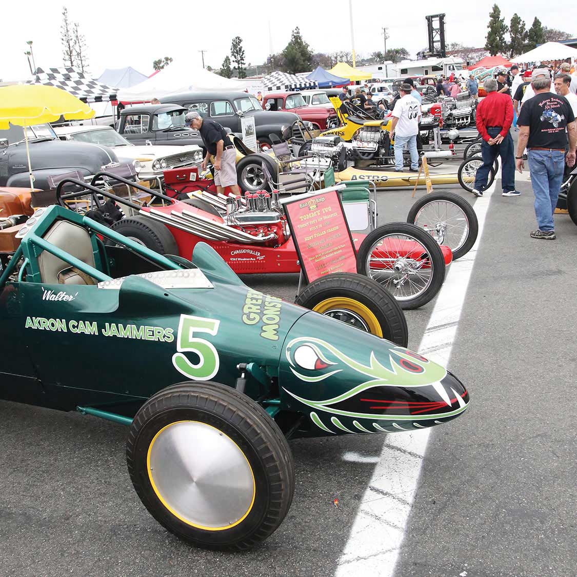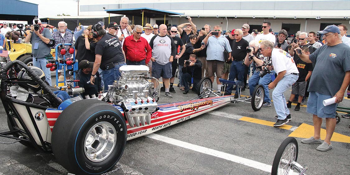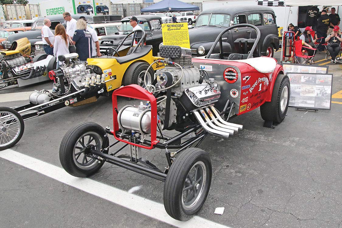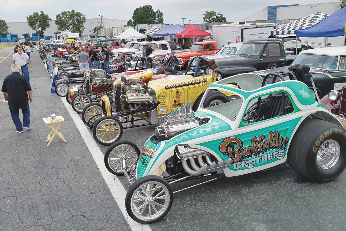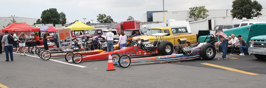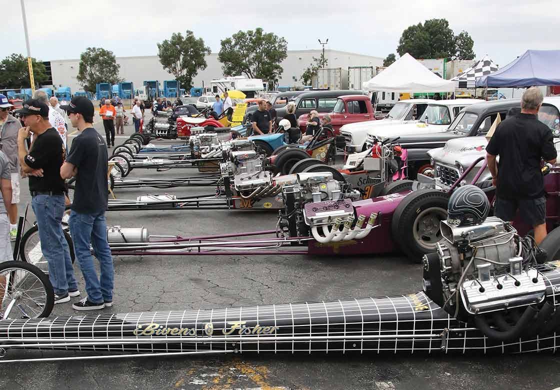 This wouldn’t be a drag race event without the smell on nitro in the air, Steve Gibbs of “Nitro Revival” presented 40+ Nitro burning dragsters and altereds cackling Rolling Thunder and Line of Fire in the back lot.