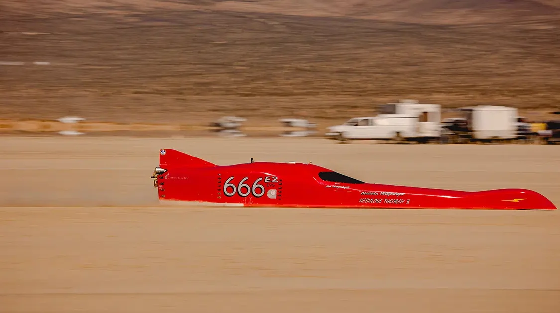 With that, you can see some of the differences from the drag race scene, and the land speed record chasing scene. While out on a track or drag strip, the drivers are chasing the best time and a competitor. In land speed racing, they are chasing the best overall speed and doing individual runs. Another factor that was very present the past two land speed seasons is weather—how it impacts the course leading up to the races and also the conditions of the day. This past November, both The Welshman andHoogerhydes’ visibility was unfortunately drastically impacted by the amount of dust filling their cabin and helmets, making it nearly impossible to chase after the records in their perspective classes, and only allowing Hoogerhyde to go through the traps at 157.668mph in his EV named, The Nebulous Theorem II. So many things can impact a race in this sport, for example, the conditions of the ground; is it too moist, too dry, too bumpy? All these factors come into play on a track or dragstrip as well, but things such as rain can dramatically impact the overall course terrain, making it undriveable and even canceling events completely.