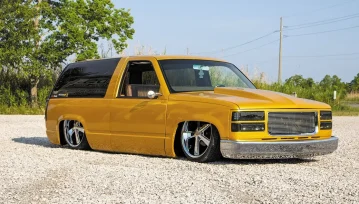 Adding to the truck’s unique look are stout 24-inch Alcoa wheels, which Randall wrapped in 285/40R24 Giovanna rubber – tires known for their all-weather performance as well as reduced road noise. Expertly tucked up into the truck’s fender wells, Randall tells us there is no rubbing from the tires to speak of, from one end of the truck’s steering to the other. The aggressive bulldog-like stance achieved by combining a bagged suspension with the large wheels and tires tucked up under the truck was certainly worth the effort to do it right.