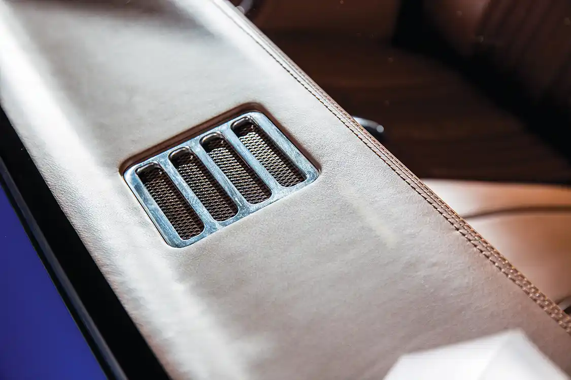 Since the build was snowballing, Sean decided to go ahead and upgrade the interior too. Like the rest of the truck, the interior work was done strictly as an upgrade, not to make the truck look significantly different. DJ Designs stepped in and reshaped the bench seat. Then a laser scanner and 3D printer were used to create new door panels and kick panels. The dash pad was extended as well. All of these pieces were covered in Relicate leather laser-etched with the design from the CST package for these trucks. A square-weave carpet and ididit steering column with Nardi wheel complete the interior.