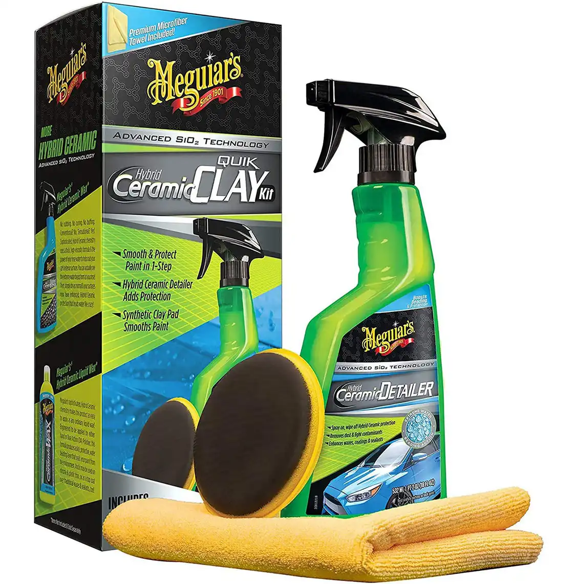 When enjoying the outdoors, it’s likely that your car ended up parked under or near a tree. Tree sap can be found as either a very fine sap mist that sits on a vehicle’s paint, or larger, dried-up blobs of tree sap. The fine sap mist can usually be addressed quite easily with a product like the Meguiar’s Hybrid Ceramic Quik Clay Kit. The kit utilizes a specialized synthetic clay pad that does a fantastic job of removing bonded contaminants from the paint surface, along with a Hybrid Ceramic Detailer that not only provides lubrication for the clay pad, but actually leaves some hybrid ceramic protection behind when you’re done.
