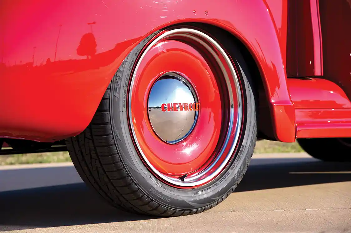 Tying the classic Chevy to the pavement is a set of custom Mobsteel rollers measuring 20×8 inches. The wheels are color-matched to the truck’s body for a clean, monochromatic style. The steelies’ ultra-traditional look paired with a modern size is the perfect blend of old and new school. Wrapping up the wheels are Falken 245/50R20 tires for plenty of grip to back up the power. Despite being made invisible by the solid wheels, super tough Wilwood brakes sit at each corner, all powered by a Wilwood master cylinder mated to a Tuff Stuff brake booster.