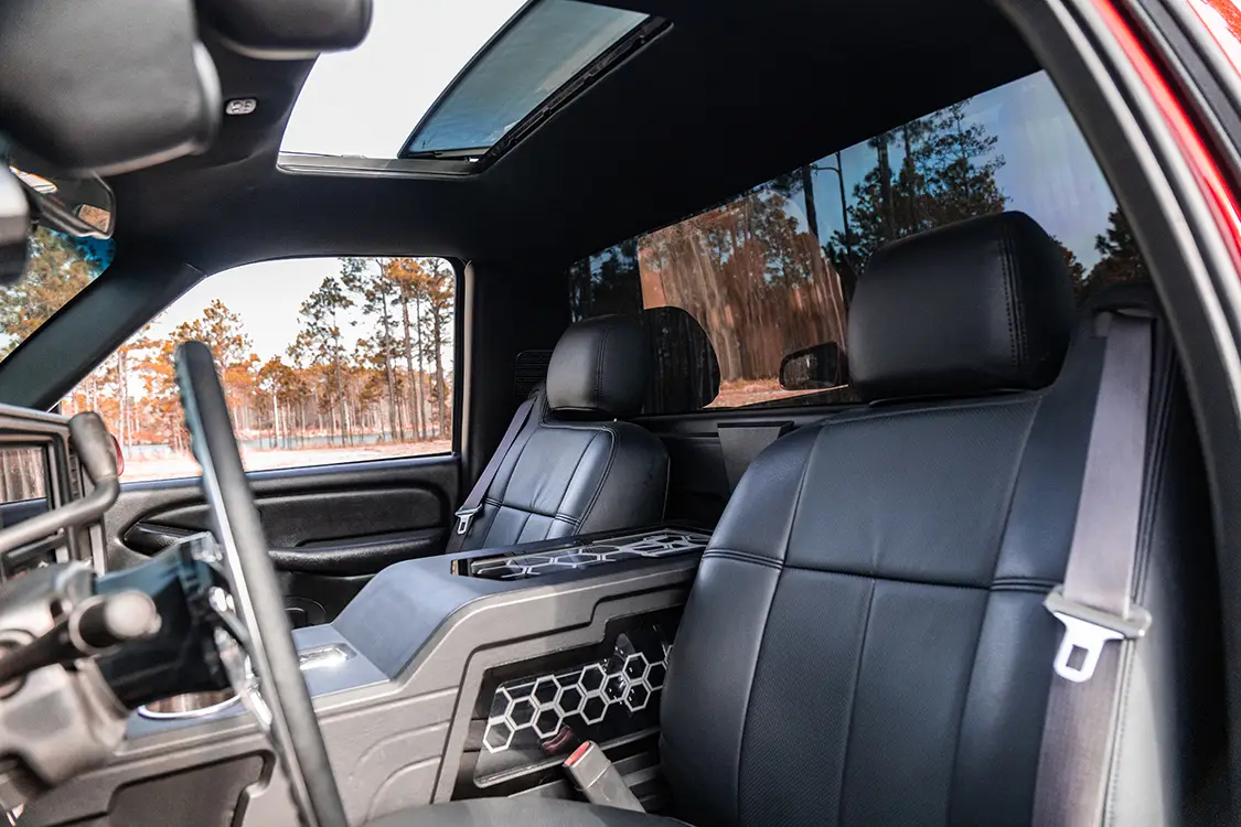 Inside, things are just as tight. The interior has been reworked with Clazzio leather seat covers, a custom console, and a powerful Sundown audio system. The wiring is hidden, the bed is tubbed, and everything works like it should.