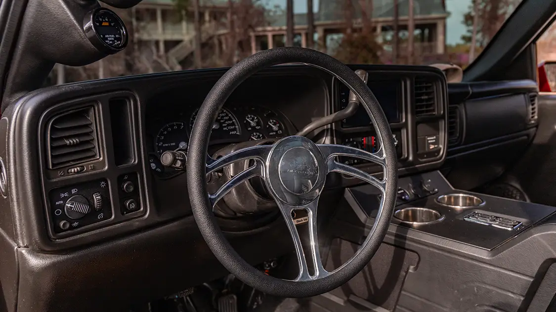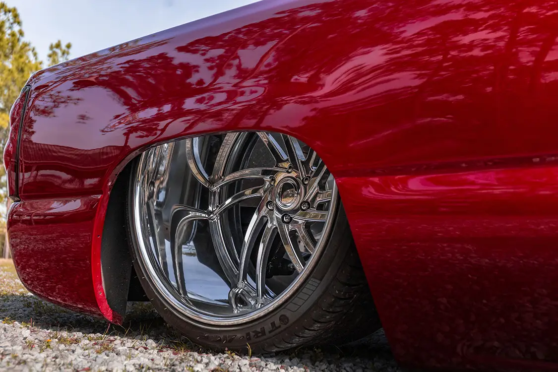 The wheels are Billet Specialties BLVD 65s—26×9-inch in the front and a massive 26×16 out back. Tires are from Tri-Ace, and the truck runs control arms from Endless MetalFab. With hydroboost brakes and AccuAir air ride, the truck rides smooth and lays out clean.