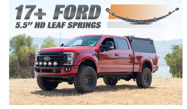 Introducing HD Full Progressive Leaf Springs tailored for 2017+ Super Duty trucks with a 5.5″ lift. These springs are engineered for trucks with a constant bed load of approximately 1,000 lbs—think drawer systems, auxiliary tanks, tools, or off-road gear.