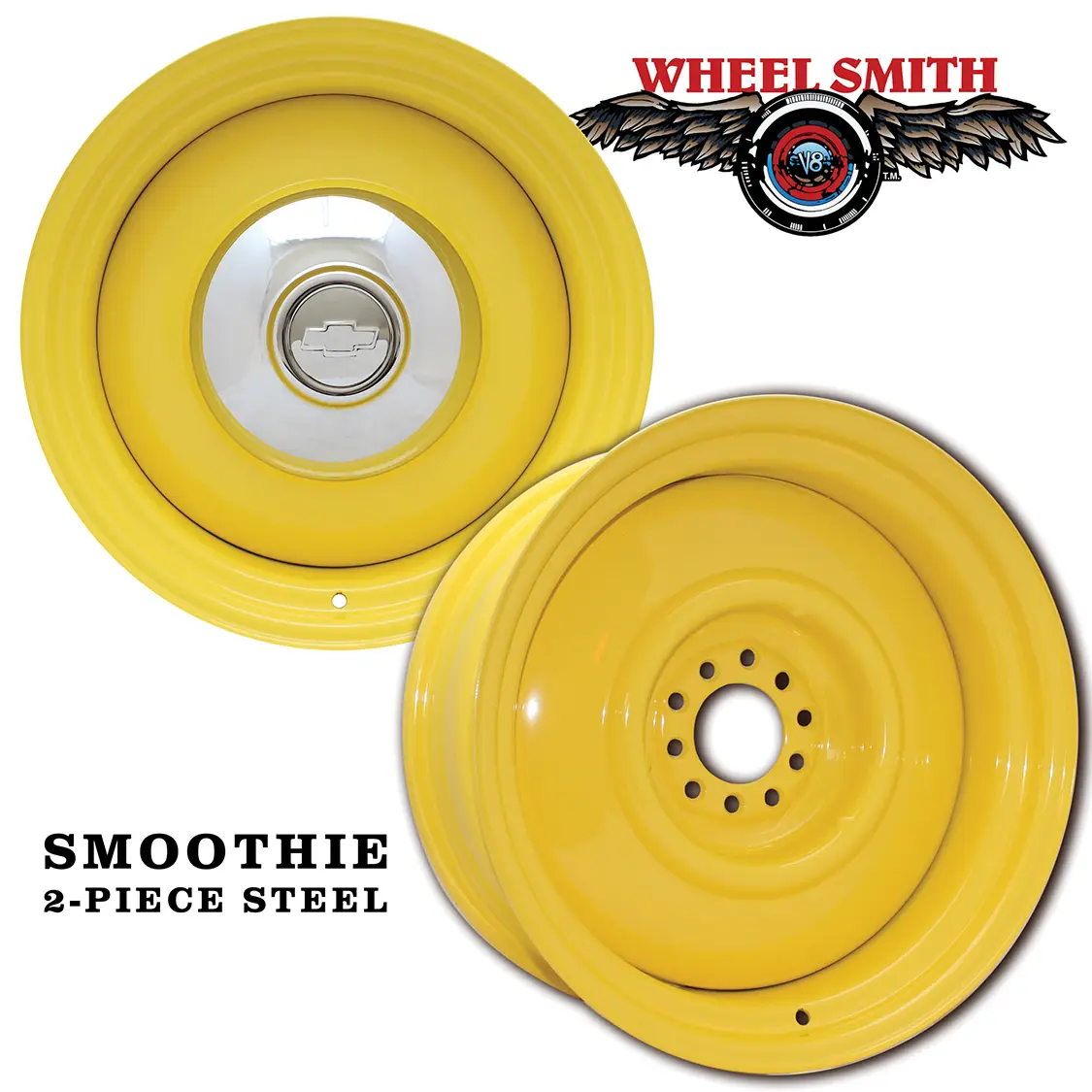 Wheelsmith, known for making hot rod and classic car wheels to order in the U.S.A. now offers our popular 2-piece steel Smoothie style wheels are now available to order at 20” diameter and up to 12” wide. Wheels are made to order in the U.S.A. by real car guys and offered at any backspace for the best fit to your vehicle!