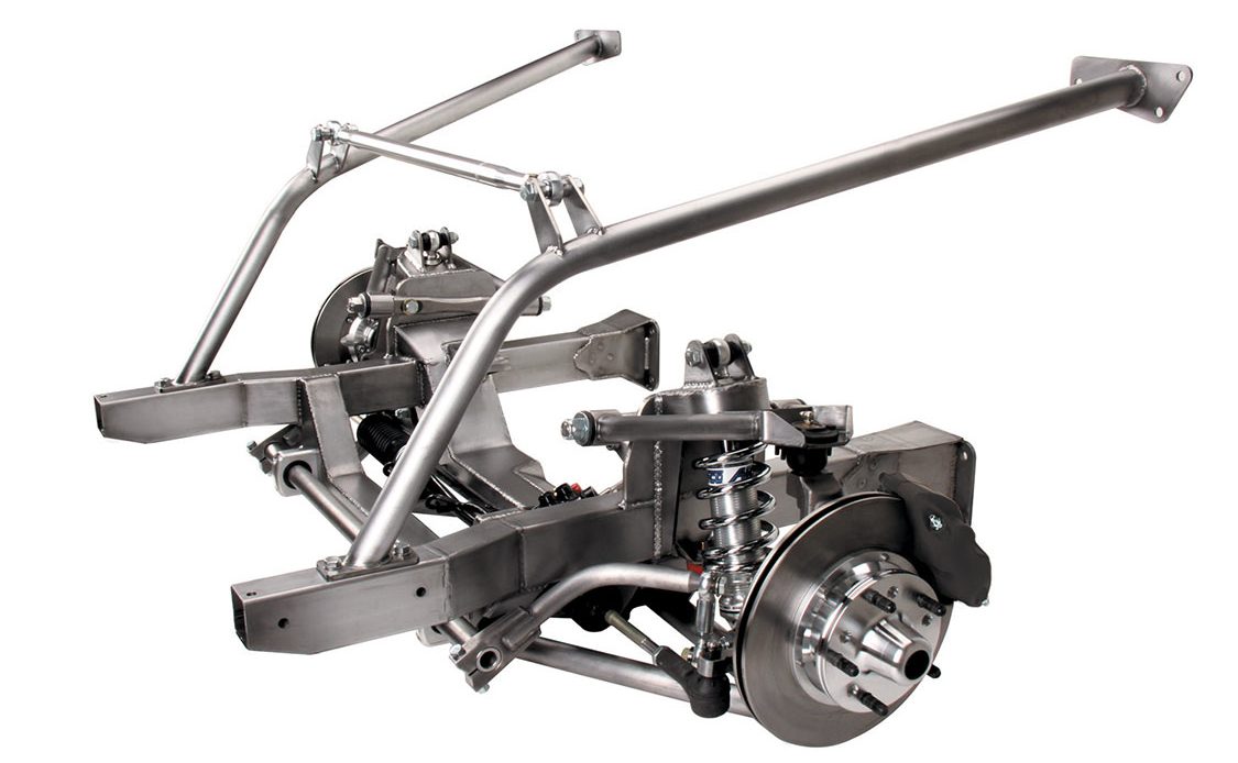 Speedway Motors is bringing modern handing at an affordable price to early Nova owners with its all-new G-Comp Front Suspension Kit for 1962-67 Chevy IIs. This performance IFS kit is a complete bolt-in front frame assembly designed around Speedway’s exclusive G-Comp spindles and engineered for optimum handling and vastly improved ride and control. It boasts a wide range of great features. Kits are available for 1962-65 and 1966-67 Chevy II Novas and include the front frame assembly, firewall support tubes, tubular control arms, spindles, AFCO coil-over shocks, sway bar, steering rack and disc brake assembly. Additional options include a heavy-duty sway bar, adjustable shocks, a variety of brake upgrades and fender support braces. Custom-designed inner fender panels will be available soon.