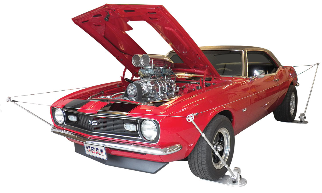 A high quality portable car show display stanchion system that comes with soft carrying cases that easily fit in the trunk of your car. It is the ideal solution to preventing incidental damage to your vehicle by creating a barrier system that helps keep people away from your hot rod, show car, boat and more.