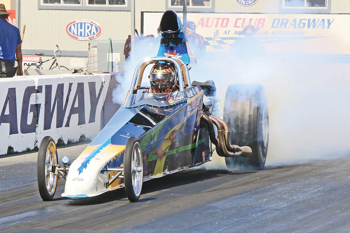 Drag racers from all over the Pacific Division gathered at the legendary Auto Club Dragway in Fontana, CA. to compete in nine NHRA classes. The spectators and the race cars enjoyed nearly ideal weather as the experienced track crew kept things fast and safe. On the Sunday of the competition, the predominantly Californian champions were crowned. Preventing the California sweep was a pair of Arizona racers, Michael Proctor in Super Comp and Frank Gostyla in Top Sportsman.