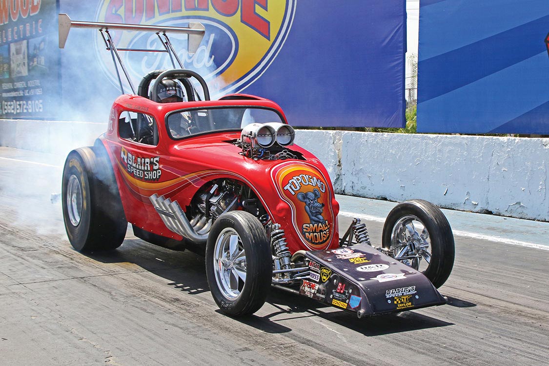 The event honored the heritage of Hot Rods and Drag Racing, Nitro Revival 3 included a wide variety of exhibition runs, continuous rolling push starts of historic vehicles that were emblematic of the era, static displays, burnouts, cackle car push starts, and our always popular Hot Rod Hangout. The huge Hot Rod show ended with a climactic “Line of Fire”, the simultaneous “fire-up” of Nitro burning vintage dragsters and altereds that has become the dramatic traditional finale.
