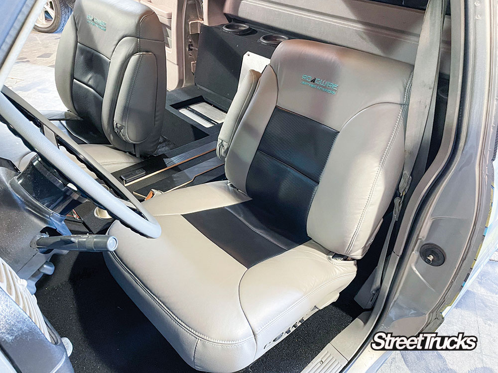 02. We originally had our factory seats wrapped in Roadwire seat covers, which looked OK, but that’s not the look we wanted with this build. So, we need an upgrade!