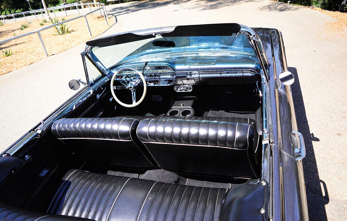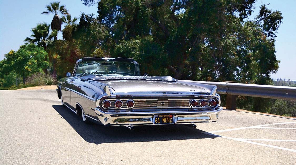 This “61 Merc” has spent it’s entire life in sunny Southern California and in addition to the mechanical overhaul, we triple-chrome-plated all the bumpers, body trim, emblems, including all of the stainless steel trim. To top it off, we contacted our friends at “The Candy Shop” in Orange, California and they installed brand new 15” rims with Spider Caps and white wall tires. This is a show-stopper and a gorgeous example of a “True California Cruiser”.