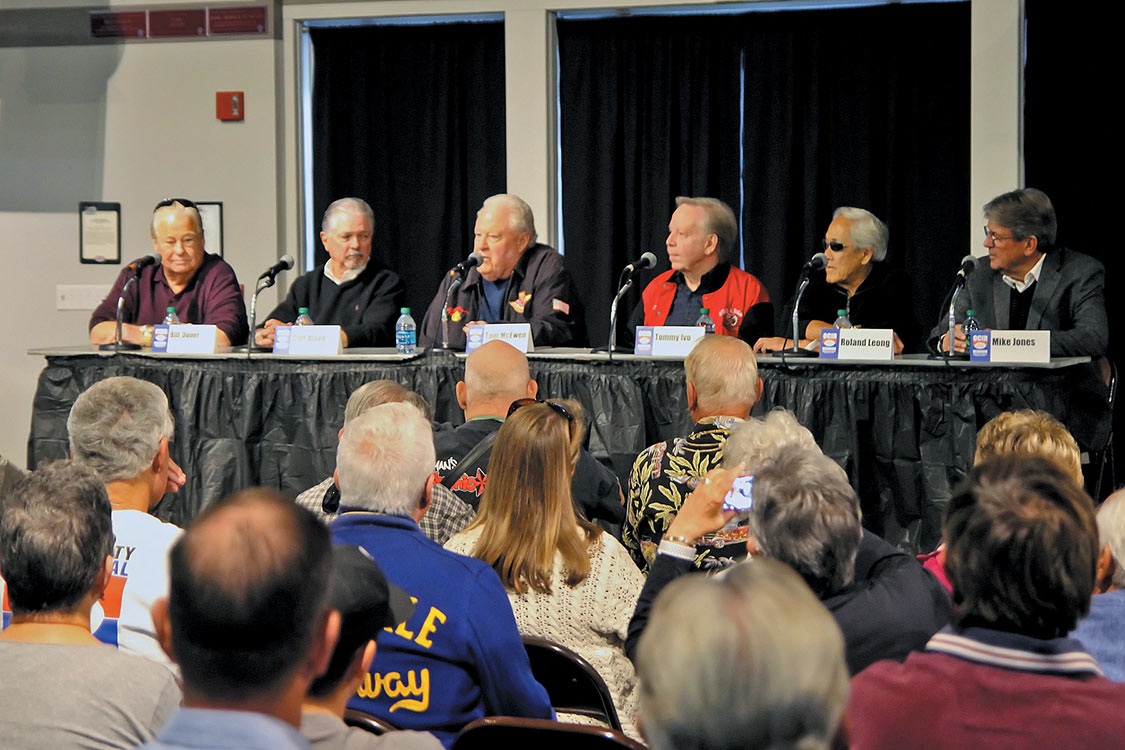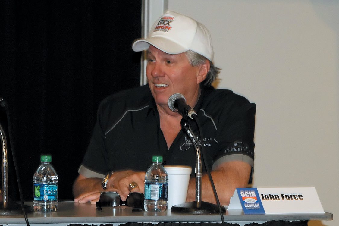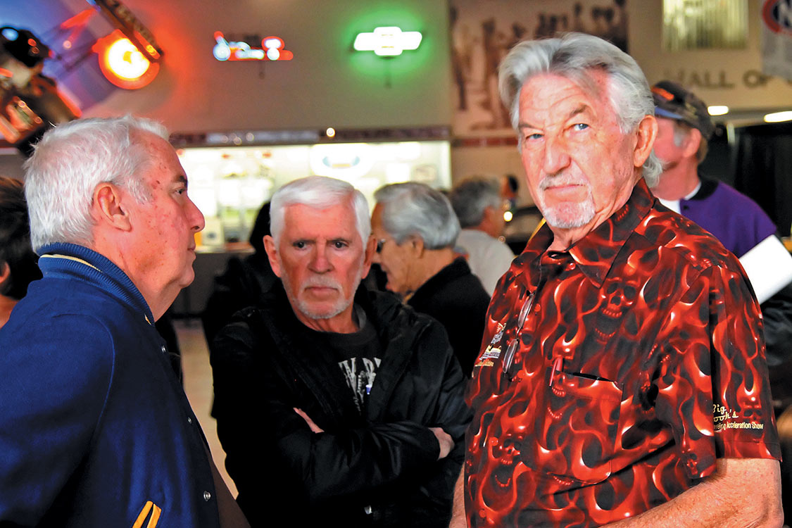 The event consisted of ace moderator Bob Beck and two panels of 10 notable people, including Bill Doner (race track owner and promoter), Carl Olson (SEMA and NHRA staff), Tom “The Mongoo$e” McEwen, “TV Tommy” Ivo, Roland Leong, Mike Jones (OCIR owner/builder), Ed Pink, Don “The Snake” Prudhomme, Steve Gibbs (former NHRA competition director) and John Force. Beck started by asking each of the panelist how they got involved with OCIR. Doner’s memories involved the unique promotions at the facility and he had some very funny stories to tell about the “Super Track.” Ivo shared a story about Ed “The Ace” McCulloch, and we got to hear about the parties in the OCIR tower. Force told stories about Snake and Mongoo$e, and we learned that Snake never lived in Covina? Doner even exposed Linda Lovelace as being the one responsible for Team Gulp!