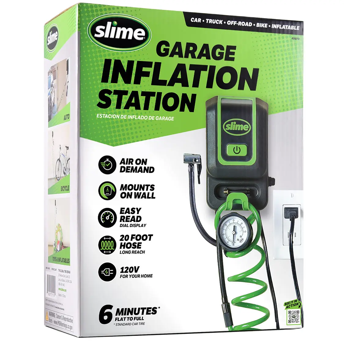 “If you have a garage, chances are it is full of items that need air – car tires, bicycle tires, balls, pool toys, air mattresses, lawn equipment, and more,” said Chad Ellman, Slime Director of Marketing. “The new Garage Inflation Station makes airing up everything quick and easy. Convenient and fast, now you can inflate like a pro!”