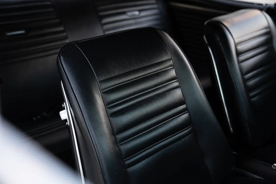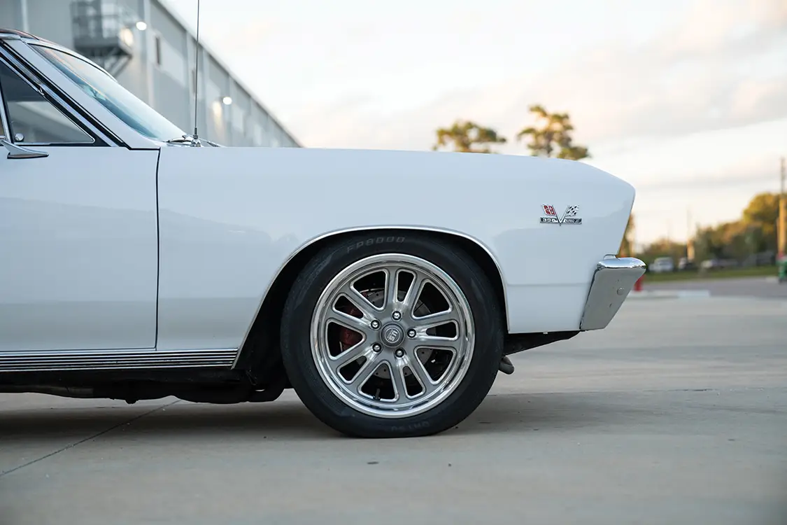 Ride height and handling are managed by Excel G front shocks and Viking double-adjustable rear units, giving the Chevelle a purposeful stance without sacrificing drivability. Inside, the factory black vinyl interior remains untouched aside from routine refurbishment; Jessie and his wife Alexis wanted the cabin to feel exactly as it did when the car rolled off the St. Louis line nearly six decades ago.