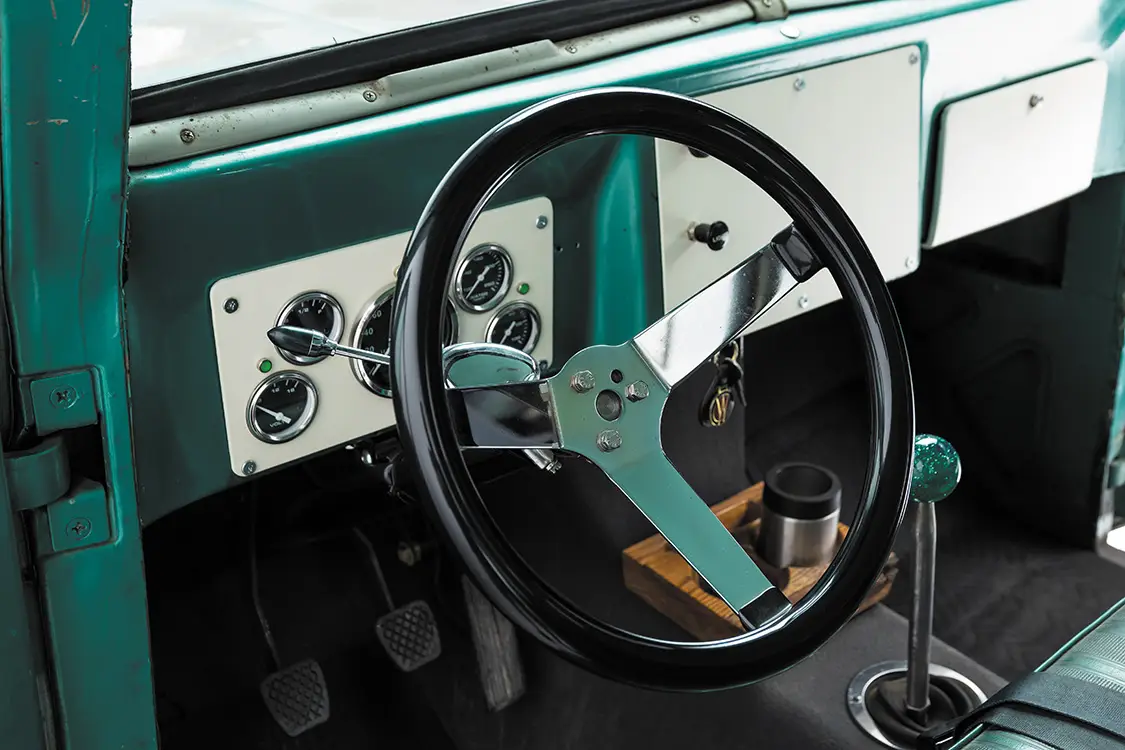 The Cummins now has a Bosch P7100 fuel injection system and a custom 3-inch exhaust made by Dave himself, paired with an NV4500 transmission by Auto Tranz. While the horsepower of the Cummins may remain in the same ballpark as the Tornado, the torque more than doubled, bringing some much-needed oomph to Dave’s new cruiser. We think the Cummins looks perfectly at home in the Wagon’s engine bay. Who would’ve guessed that a power plant 30 years younger would look so proper in an old Willys?