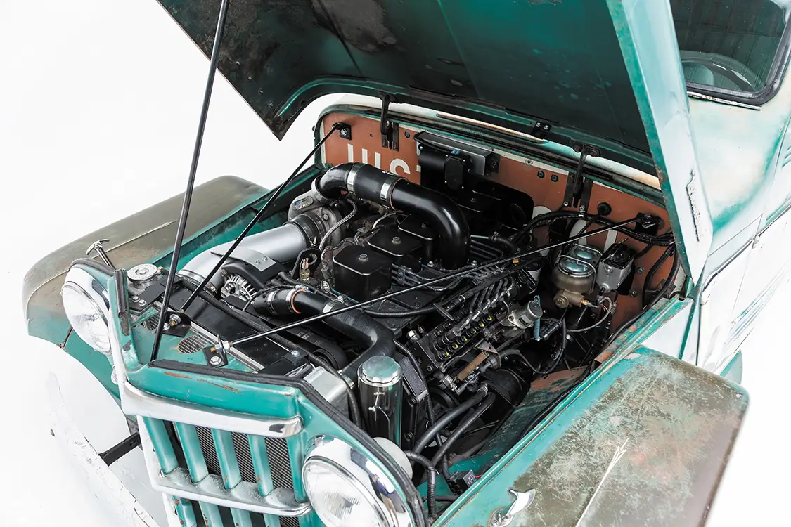The 1963 Willys Wagons came from the factory with the new (in the 60s) Tornado gas-powered motor that churned out an eye-watering 140 hp and 221 lb-ft of torque, which produced 17 mpg on the highway and 14.7 mpg in the city. That’s not too shabby, given the circumstances, but Dave knew that if he wanted a reliable cruiser that could get up to highway speeds without issue, the Tornado had to go. So out came the ‘nader, and in went a 1995 12V Cummins motor coupled with an HE351 turbo from a third-gen Ram.