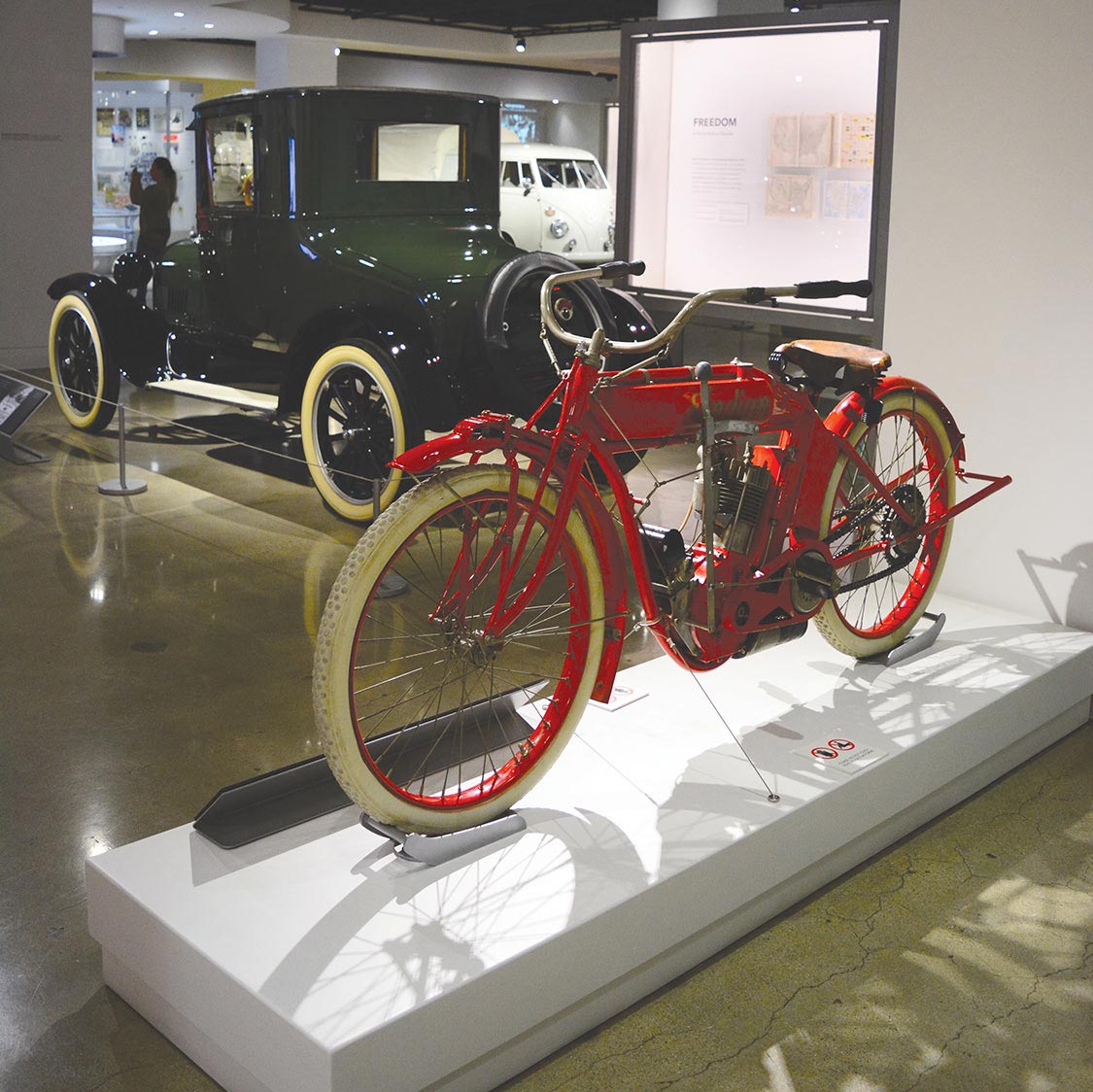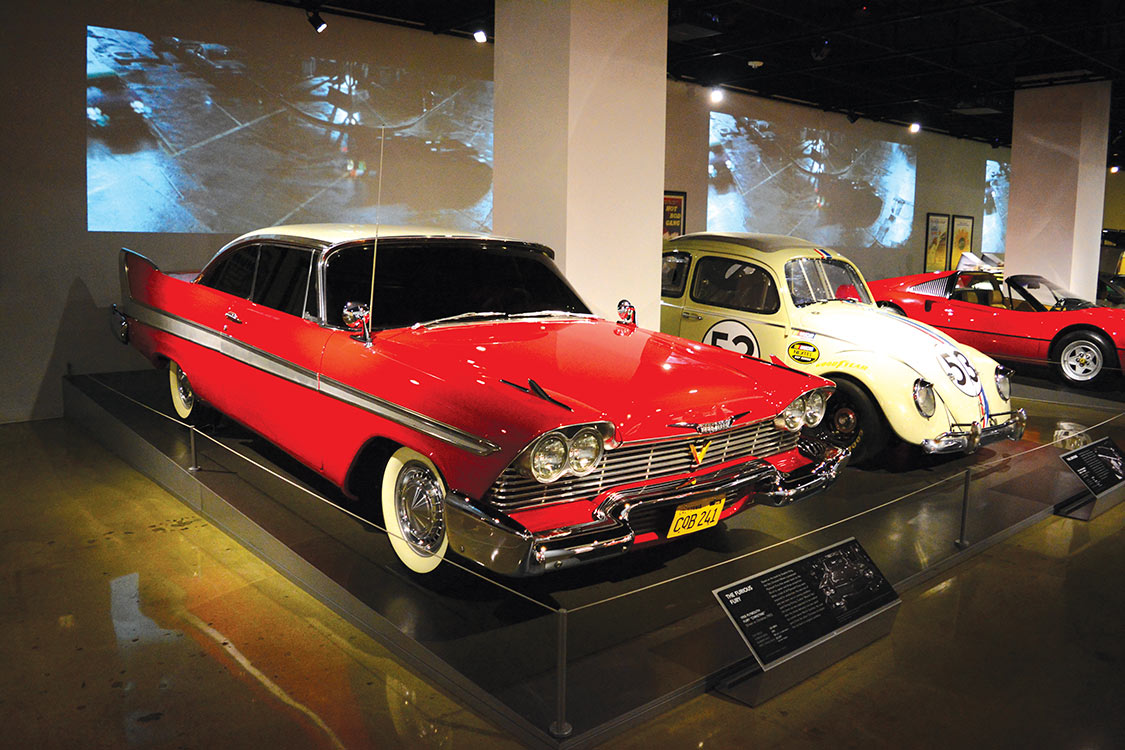 An ever-popular collection is the movie car collection, or “Star Cars”. A wonderful selection of cars we have bonded with in our youth, and through today. The original Bat Cycle with its whimsically designed side-car is featured prominently on a raised foundation. The Batcycle made its first appearance in 1966 in the Batman TV series. Not far away, a newer Batmobile from the movies Batman and Batman Returns. As you walk down the row of Star Cars you will see some of the more notable cars are: the Back to the Future Delorean, the Thunderbird from Thelma and Louise, and the Ferrari 308 from Magnum P.I. Personally I was drawn to an original Herbie the Love Bug from the movie Herbie: Fully Loaded, and the infamous red Plymouth Fury known as Christine.