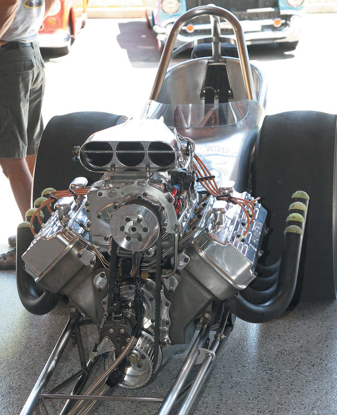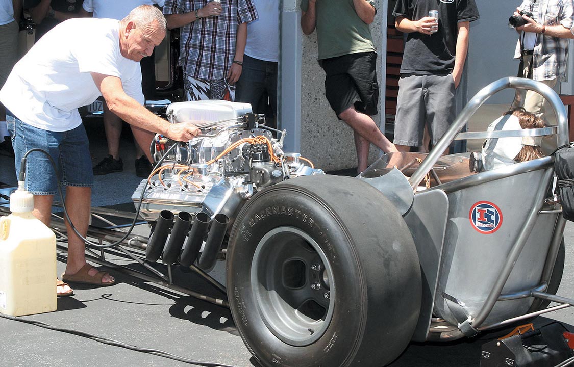 On Aug. 24, 2014, Platinum Black celebrated its grand opening. The day was clear and warm, and lots of cars and people showed up to the party. All four of the large bay doors were open, inviting guests to come in to take a look around the very clean facility. A portion of the facility is dedicated to vehicle storage, and bays to service cars occupy the remaining space. One bay held Andy Humenik’s front-engine, nitro-burning, Hemi dragster, and it was rolled outside and fired up to entertain the crowd. Platinum Black provided liquid refreshments and great handmade tacos with beans and rice to fuel the celebration. We wish Jon and Chris good luck with their new venture.