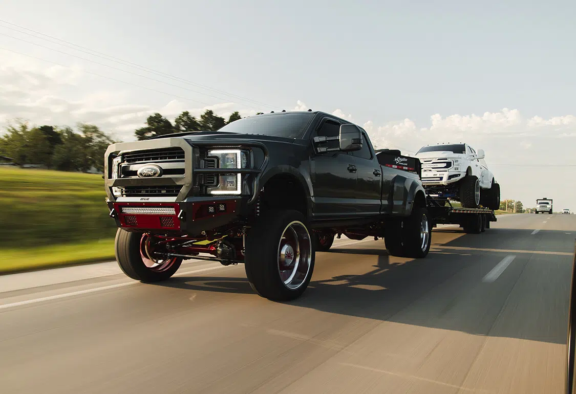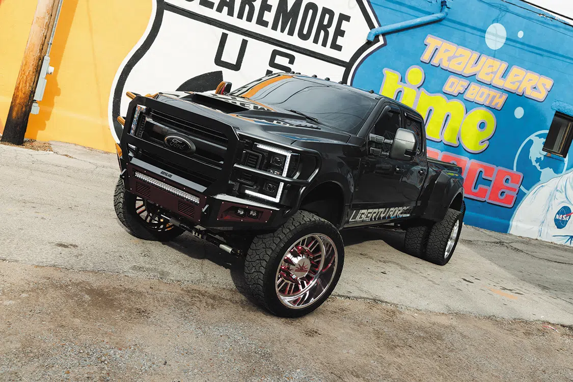 All in all, Kenny stated the easiest part of the whole build was dropping it off to get built! And even better, the whole build only took four months in total, despite being sent the wrong blocks for the rear part of the lift! For most of us, four months isn’t even enough time to settle on the powder color, what suspension, or what turbo size you want to run. For Kenny, time flew by. He’s been right back at driving it like a normal dually, ripping it around town and towing whatever he needs to. Apart from being able to enjoy the truck with his family and friends, he says his favorite part is the front bumper, as it really sets off the look and sets the tone of the whole build. Be sure to keep an eye out for the Liberty Forged convoy at a show near you!