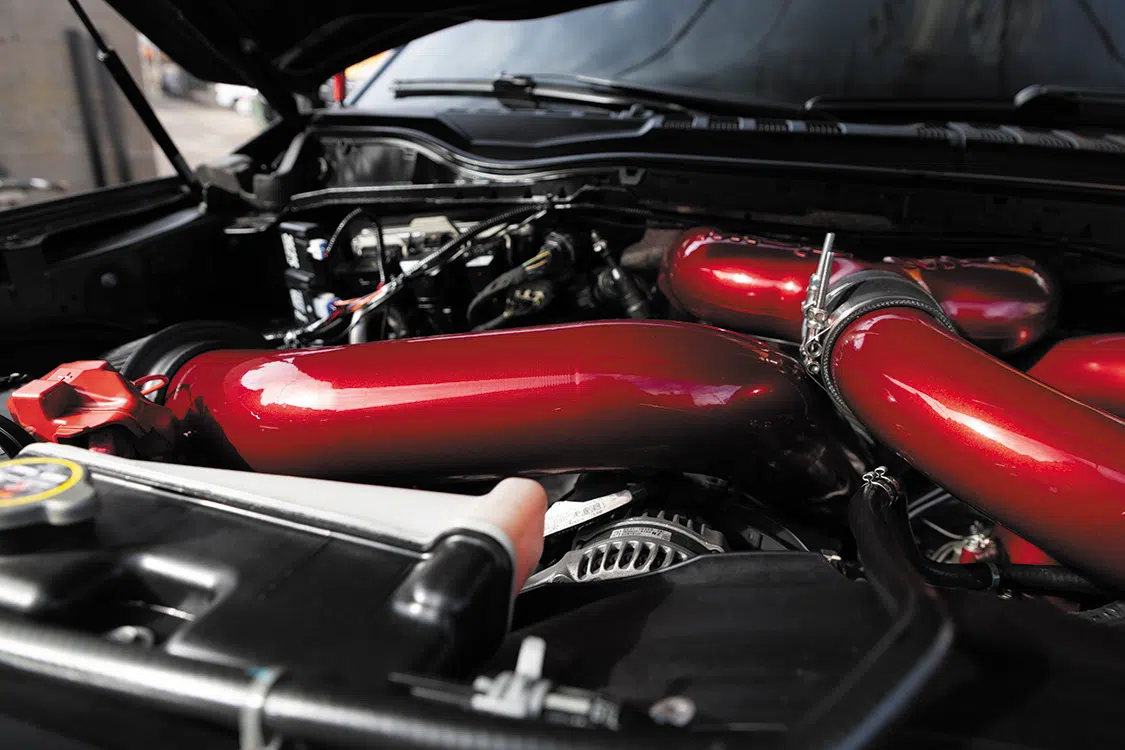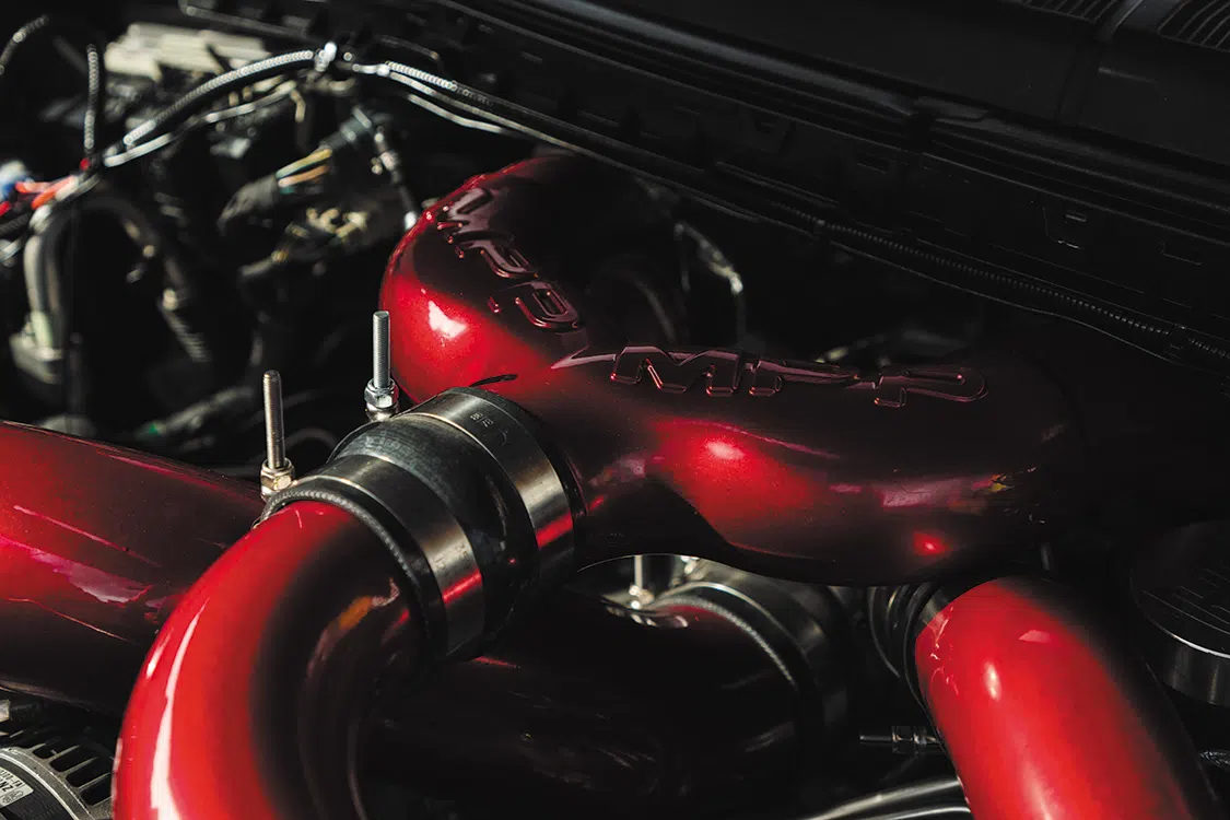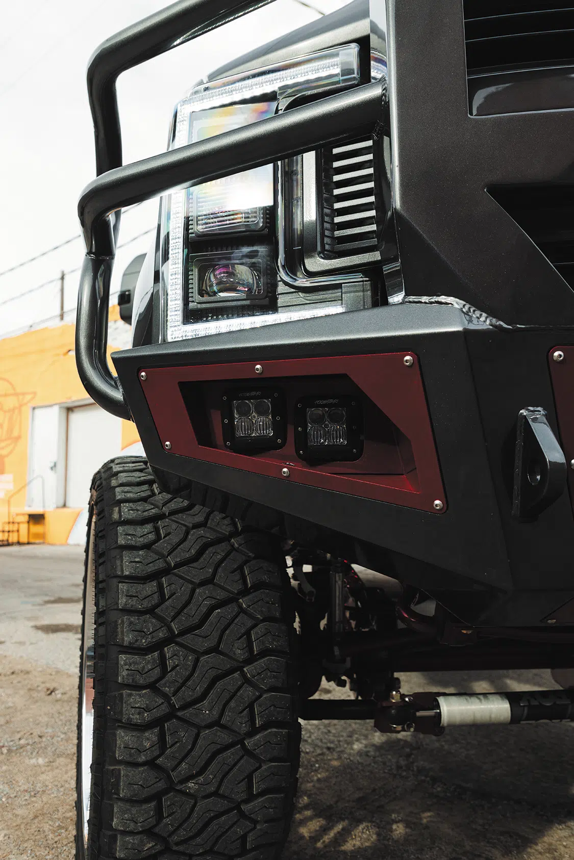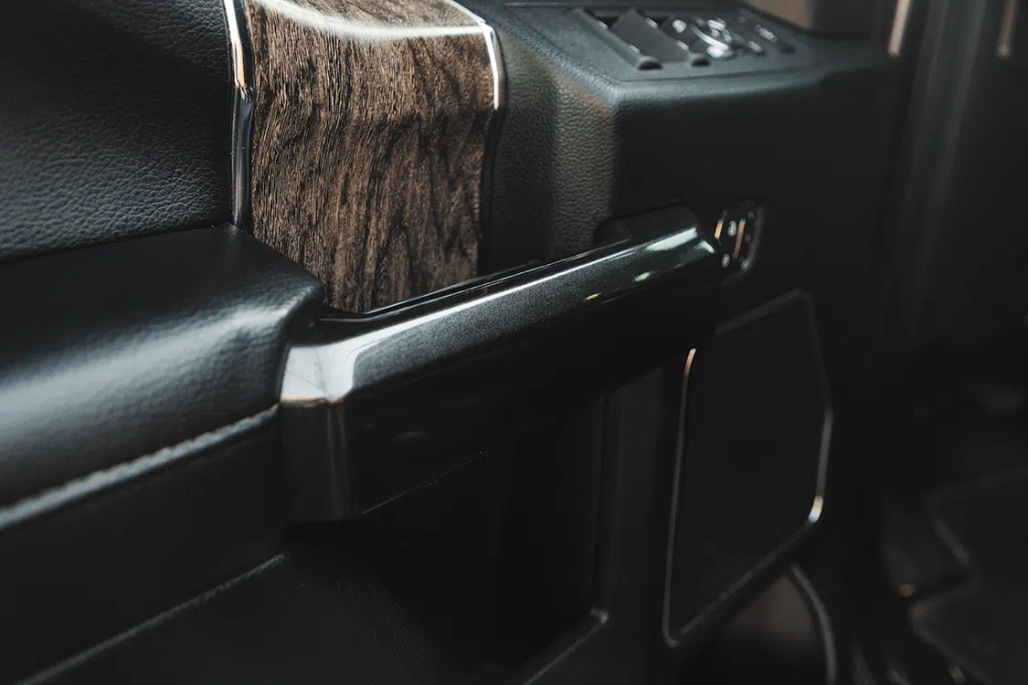 The 6.7 itself has also been modified to an extent, receiving a Maryland Performance Diesel Piping Kit and a CCV delete. As for exhaust, there is a five inch Flo Pro kit that lets the truck breathe that much better as well as subtly boosting the exhaust note. Keeping it reliable and easy to maintain were important build points; the truck tows Kenny’s sons truck across the country for all of the shows Liberty Forged finds themselves at. So that means throwing three gigantic turbos on it is out of the picture, for now, at least. You can, however, find this truck at most of the big truck events, such as; Lonestar Throwdown, Orange Beach Invasion, iDrive Showdown, Music City Showdown, Florida Truck Meet, Lifted Truck Nationals, and of course a plethora of local shows around Oklahoma, such as Slamboree. Although, the truck may be slightly different, as Kenny says he wants to lower the front down a just a little bit and run a normal dually front wheel instead of the super single. Other plans to update the truck include throwing in a set of red and grey leather seats made by Alea Leather!