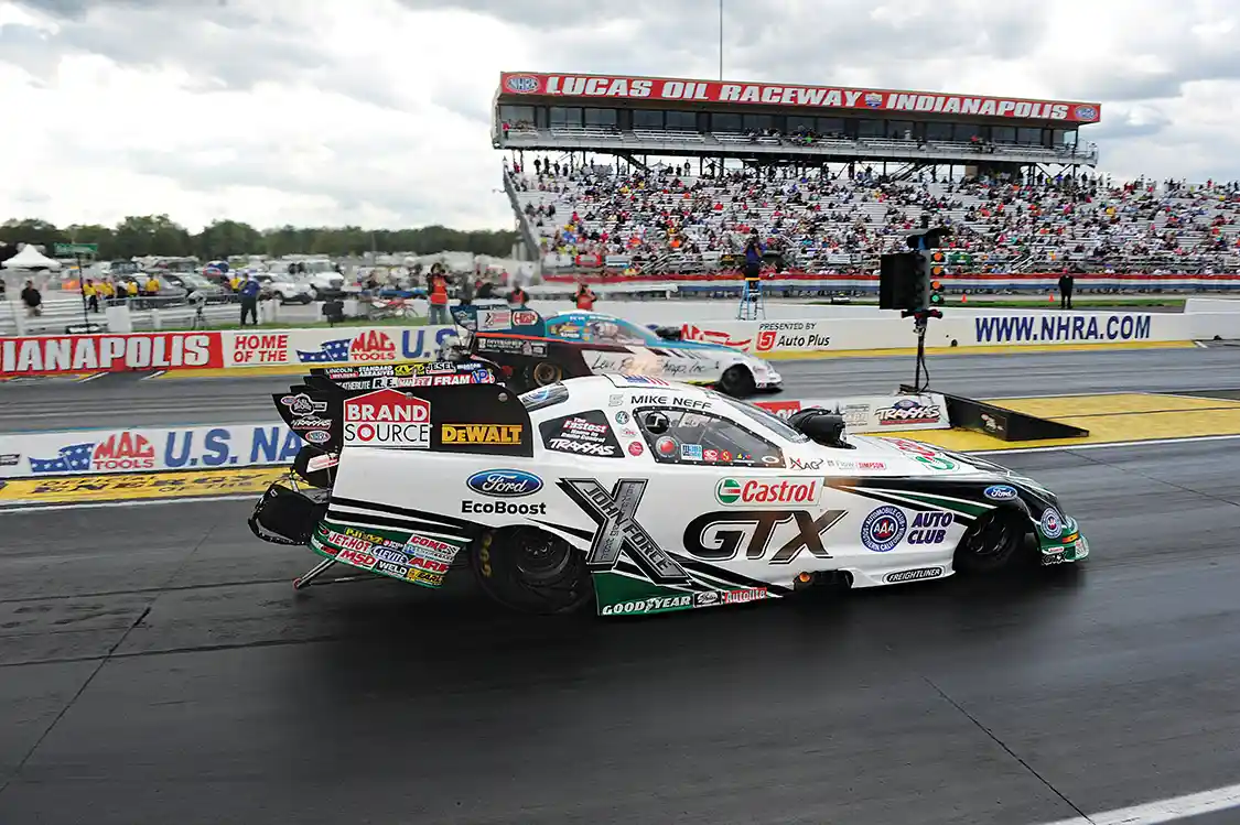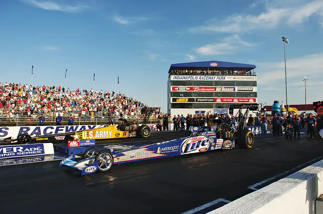 True to its Hoosier heritage, Lucas Oil Raceway at Indianapolis is unpretentious. It’s two stripes of asphalt tucked behind some oil storage tanks, across a skinny two-lane road from a sprawling cornfield. The Raceway is dwarfed in size and fame by the storied Brickyard about 4 miles east on U.S. 136, but it’s sacred to drag racing. It’s home to the National Hot Rod Association’s 60-year-old U.S. Nationals Labor Day classic, where names such as Glidden, Garlits, Muldowney, Prudhomme and Schumacher summon a sense of fierce competition, of individual triumph, of tragedy, pride and continuity.
