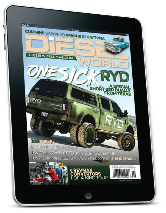 The latest issue of Diesel World brings you the best in diesel performance, innovation, and industry insight. On the cover, One Sick Ryd, a short-bed F-250 dually, steals the spotlight with its head-turning style. Dive into Stock to Not’s 4WD Form, the next step in our editorial build, and learn everything you need to know about oil weight from Dusti_LBZ.
