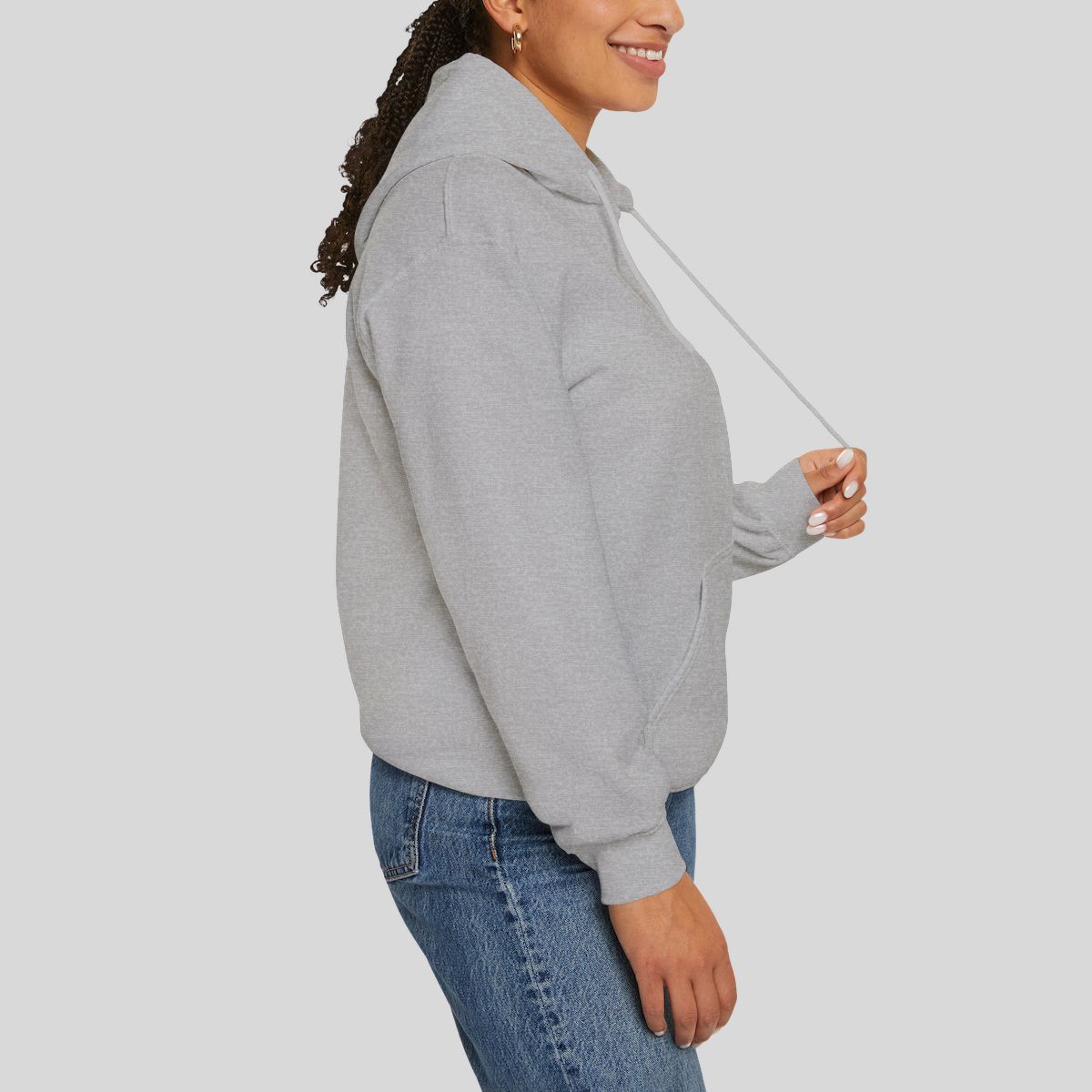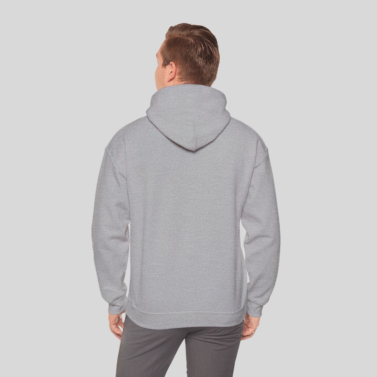 This unisex heavy blend hooded sweatshirt is relaxation itself. Made with a thick blend of cotton and polyester, it feels plush, soft and warm, a perfect choice for any cold day. In the front, the spacious kangaroo pocket adds daily practicality while the hood's drawstring is the same color as the base sweater for extra style points..: Made with a medium-heavy fabric (8.0 oz/yd² (271 g/m²)) that consists of 50% cotton and 50% polyester for that cozy feel and warmth you need in a hoodie..: The classic fit along with the pouch pocket and the tear-away label make for a highly comfortable, scratch-free wearing experience. .: The color-matched drawcord and the double-lined hood add a stylish flair and durability that tie everything together..: Made using 100% ethically grown US cotton. Gildan is also a proud member of the US Cotton Trust Protocol ensuring ethical and sustainable means of production. The blank tee's dyes are OEKO-TEX-certified dyes with low environmental impact..: Fabric blends: Heather Sport colors - 60% polyester, 40% cotton