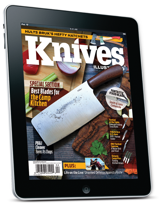 The March/April 2023 issue of Knives Illustrated features a special section focusing on knives for the camp kitchen. In this section, you’ll find articles on knives you wouldn’t ordinarily think of for food prep at home, including the Emerson Folding Steak Knife and the three Camp Plus folding knives from the Ontario Knife Company. The section will also include articles from bushcraft expert Reuben Bolieu on the PB&J Knives Cleaver and tips on how to craft basic cooking rigs using the resources you find in the woods. In other features, regular contributor Jim Cobb reviews the RMJ Tactical Sparrow and Smith & Sons Comanche fixed blades. Do you need something even more heavy duty? Editor Steve Barlow puts a couple of Hults Bruk hatchets to the test. In Part 1 of our two-part feature on knife defense, martial arts expert Patrick Vuong provides his suggestions on defense against a knife-wielding attacker when you are unarmed. This issue will feature a review of the DEMO folder collaboration between RYP Design and William Harsey that pays tribute to CIA legend Billy Waugh. Take a look at the best of knife artistry in our review of the book, “Of Knives and Men.” Because our readers carry more than just knives on a daily basis, this issue debuts a new regular column, An Eye on EDC, to showcase the latest in everyday carry gear.
