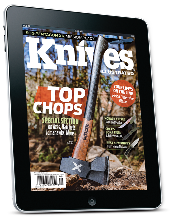 We literally get into the swing of things this May/June issue with our special section on chopping tools. When you really need the wood chips to fly, we show you how the tomahawks, hatchets, machetes and axes we cover can get the job done. Reuben Bolieu uses his excellent bushcraft skills to spotlight the many uses of lightweight tomahawks and puts the Viking-inspired TOPS Storm Vector machete to the test. Meanwhile, editor Steve Barlow gets to work with the Woox Forte, a mid-sized axe with lots of chopping power. He reminisces too about some of his favorite all-time hatchets. We have reviews of knives, of course. Tim Stetzer tests the SOG Pentagon XR and Michael D’Angona takes us through the inner workings of CRKT’s lastest takedown folder, the Bona Fide. Kevin Estela introduces us to a fixed blade and a folder from Jake Hoback: the Shepherd and the Radford. In case you want to put more knives on your wish list, we take a peek at some of this year’s new products from makers such as Gerber, Benchmade, Buck, Spyderco and SOG too. And martial arts expert Patrick Vuong gives us some insights on how to select the best blade for self-defense.