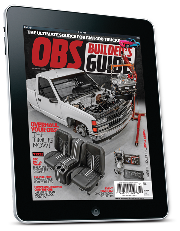 Were you a fan of the sport truck craze in the 90s? If so, OBS Builders Guide is the publication for you. We build, drive, and document the coolest and most extreme ‘88 to ‘98 Chevy trucks on the planet! Over 890,000 of these trucks were produced in the very first year alone, and now it's easier than ever restore and modify this cultural icon.