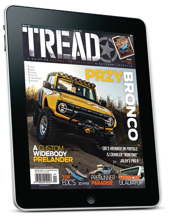 This issue of Tread is packed with innovation, adventure, and builds that push the limits of what off road machines can be. On the cover, the Przy Bronco restores faith in what a modern Ford build is capable of, blending classic inspiration with serious capability. Inside, you will find the Pro R Race Replica and the story behind an untold legend, along with the world’s first portal equipped 2025 4Runner from CBI and Prinsu that is truly setting a new standard.