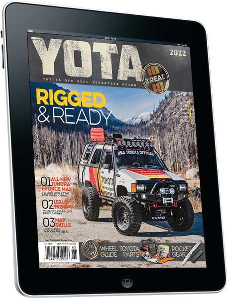 YOTA is back and jam-packed with all things adventure. The new 2022 issue is here, with the latest updates on Toyota off-roading. Join us as Wayne Weidow shows off his 1987 Toyota 4Runner, which he has spent over three years building up into an impressive rig. Learn how to navigate the old-fashioned way with our in-depth guide to using topographical maps. The guide covers the importance of topographical maps, compass selections, contour lines and much more! Check out Curt Reesor's awesome Tacoma, which he uses as a daily driver and overlanding rig. Reesor's impressive setup helps him get out into the wilderness. Don’t miss out on the in-depth look at the all-new 2022 Toyota Tundra i-Force Max twin turbo hybrid from Bryon Dorr.